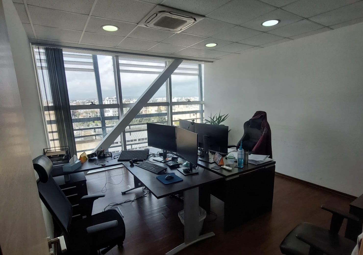 An office for rent in a business center located in the business district of Larnaca on a busy highway. The office consists of 4 offices, a reception area, a kitchen and a bathroom.