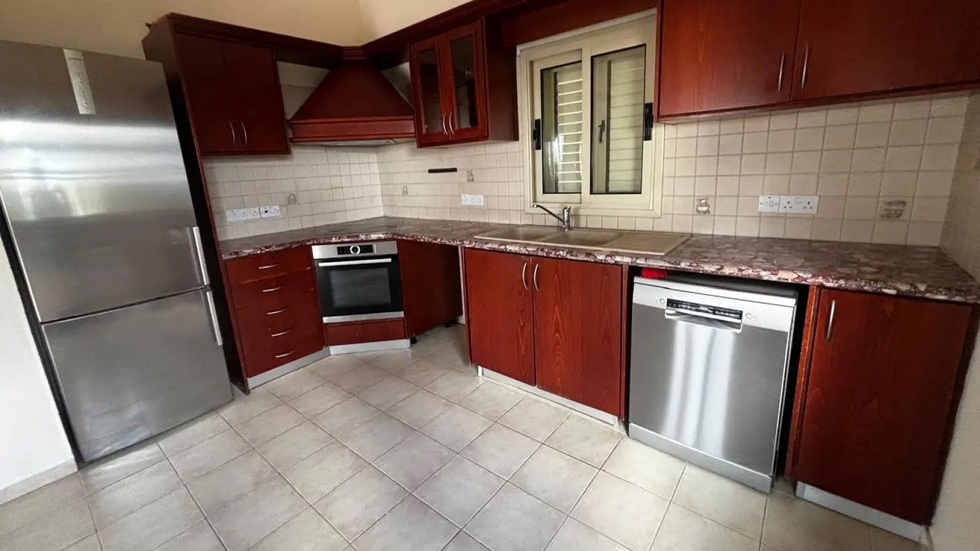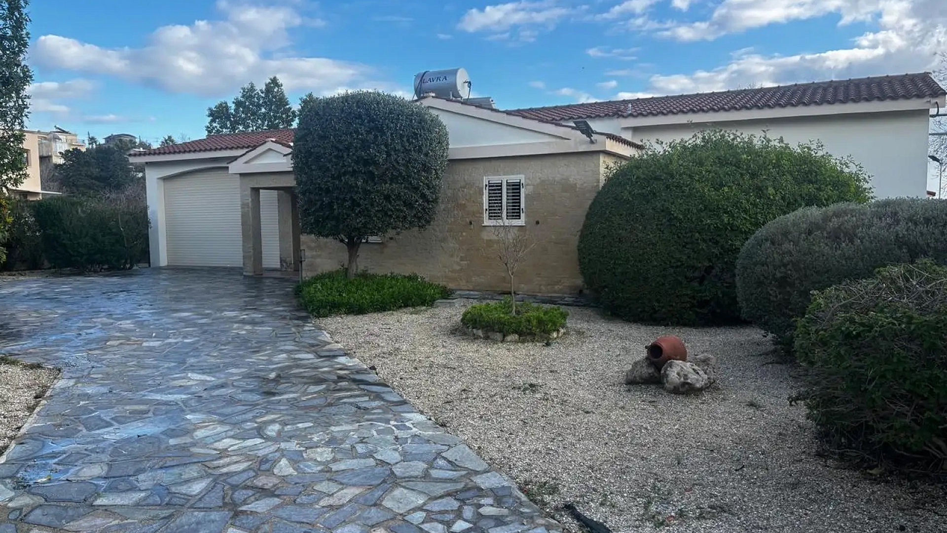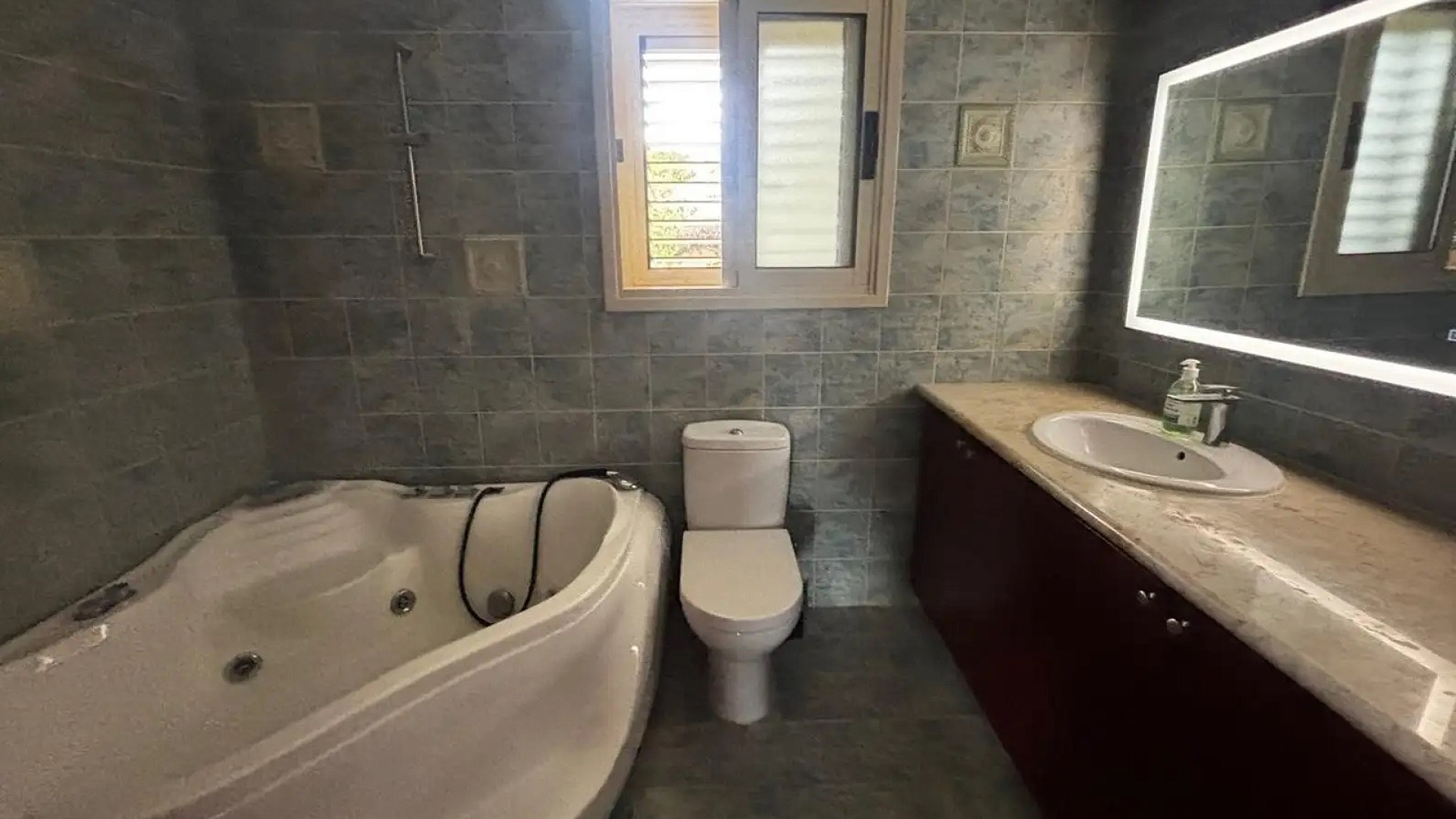 For rent a four-bedroom house with an area of 170 m2 on a plot of 1000 m2 in the area of Mesogi, Paphos. The house includes four bedrooms, two bathrooms, a kitchen, a living room, a fireplace, a covered parking, a swimming pool and a well-maintained garden. The residence is unfurnished, equipped with central heating, air conditioning in all rooms, alarm system, fireplace, automatic gates with remote control, doorbell and electric shutters of the garage doors. The house is a traditional bungalow surrounded by a mature, green garden, creating a feeling of complete privacy and harmony with nature. The site is fenced, the entrance is through a guarded gate, which ensures a high level of security and privacy. A spacious double garage with electric gates provides convenient and secure parking. The house was built in 2006, has energy efficiency class B, pets are allowed. The property is ideal for families who appreciate silence, spaciousness, natural views and the authentic atmosphere of a traditional Cypriot house. The property is located in one of the quietest and most secluded areas of Mesogi, close to the village and infrastructure, with convenient access to ISOP Private School and other amenities, while offering panoramic views of the valley facing the sea and a view of the village church in front.