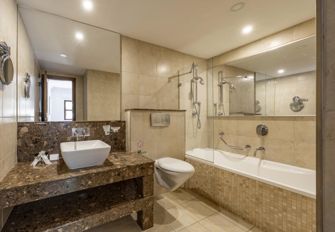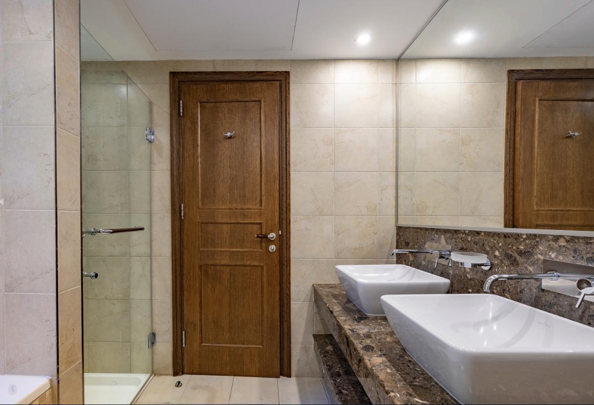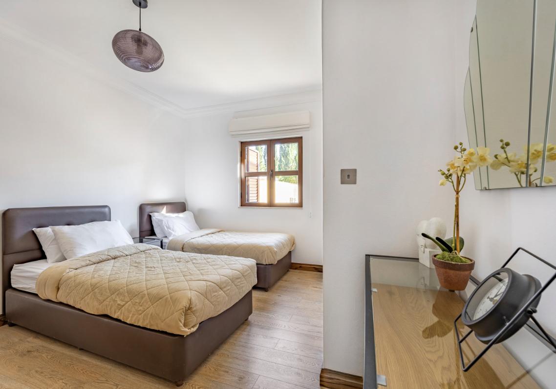 For rent a double apartment with an area of 117 m2 in Kouklia, Paphos. The apartment includes 2 bedrooms, 2 bathrooms, a living room with a dining area, a fully equipped kitchen and a spacious terrace overlooking the pool. The apartment is equipped with air conditioning, heating system, Wi-Fi, Satellite/ Cable TV, washing machine, tumble dryer, iron and ironing board, hairdryer, hot water heating system, storage cabinets, bed linen and towels. The kitchen is equipped with a fridge, freezer, electric hob, electric oven, microwave, dishwasher, electric kettle, coffee machine, toaster and kitchenware. Additionally, the residence provides parking, outdoor furniture, a BBQ/Grill area on the terrace, professional cleaning, contactless check-in and check-out, an outdoor lighting system, a fire extinguisher and a first aid kit. The property is located in a gated gated community with 24-hour security, which includes a communal swimming pool, a spa, an 18-hole golf course, a tennis club with professional coaches, restaurants, cafes, a pharmacy and a mini market. A shuttle bus to the Paphos city center is provided for transportation.