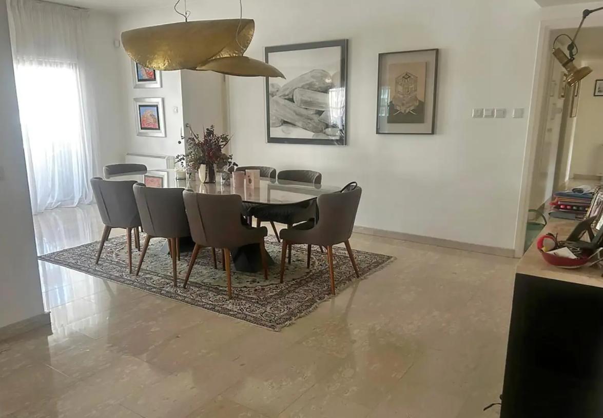 For rent a three—bedroom apartment in the area of Strovolos - Acropolis, Nicosia with a total area of 240 m2 on the 2nd floor, occupying the entire floor in a family house. The layout includes three bedrooms, a dressing room attached to the master bedroom, three bathrooms, two living rooms and a separate dining room, there are large verandas of 40 m2. The apartment is unfurnished, with a full air conditioning system, high-quality appliances, a storage room, an alarm system, a covered parking space and a separate bathroom for an assistant with a bathtub.