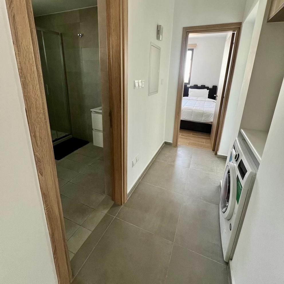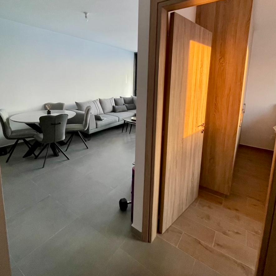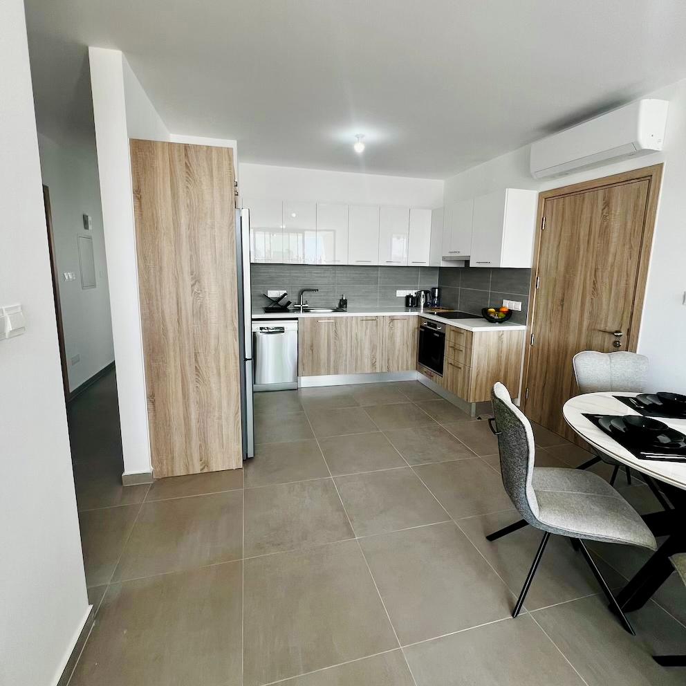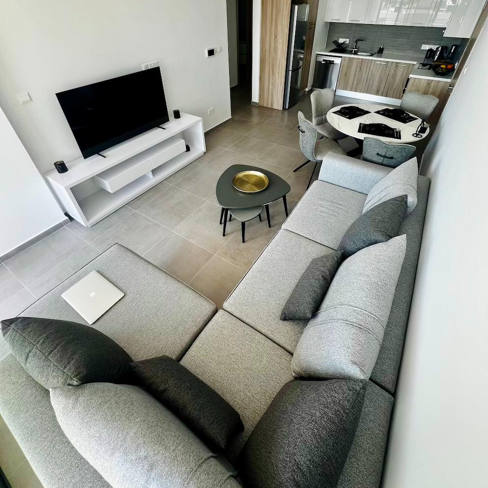 Two-bedroom apartment for rent in Livadia Sea Side, Larnaca with a total area of 99 m2, including 78 m2 of interior space and 21 m2 of covered balcony, located on the 2nd floor in a new house in 2024 in a prestigious coastal area. The apartment is fully furnished and ready to move in, equipped with basic kitchen equipment and bedding, includes an open kitchen and a loft-style living room, two bedrooms with three beds and two bathrooms with showers. The kitchen is equipped with Bosch appliances, including a dishwasher, an oven, a stove, a refrigerator and a coffee machine, and a drinking water filter. In the living room there is a spacious corner sofa, coffee tables. Samsung Smart TV and a dining area with a marble table. The apartment is quiet and private, with double glazing and thick walls, a private covered parking space is provided, the convenient location provides quick access to the sea, the city and transport hubs.