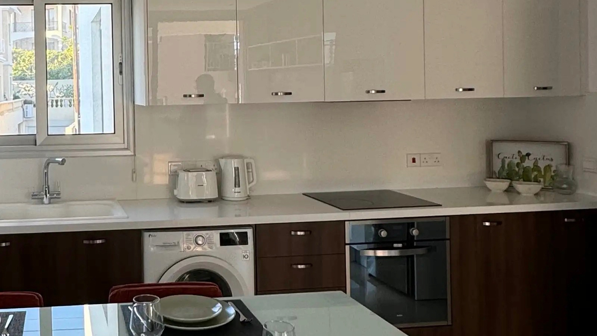 For rent a double apartment of 90 m2 in the area of Agios Athanasios, Limassol. The apartment is located on the 1st floor. The apartment includes two bedrooms, two bathrooms, a kitchen, a living room, a balcony and a storage room. The apartments are fully furnished and fully equipped with household appliances, and an air conditioning system is installed in all rooms. The apartment is located in a newly renovated, modern and well-maintained small apartment building built in 2019, characterized by comfort, privacy and stylish interior. A special feature of the property is a 35 m2 private roof garden with open views, suitable for relaxing, entertaining and dining outdoors. The property is located in the Panthea area, Agios Athanasios, in a quiet and convenient location with quick access to all necessary infrastructure.