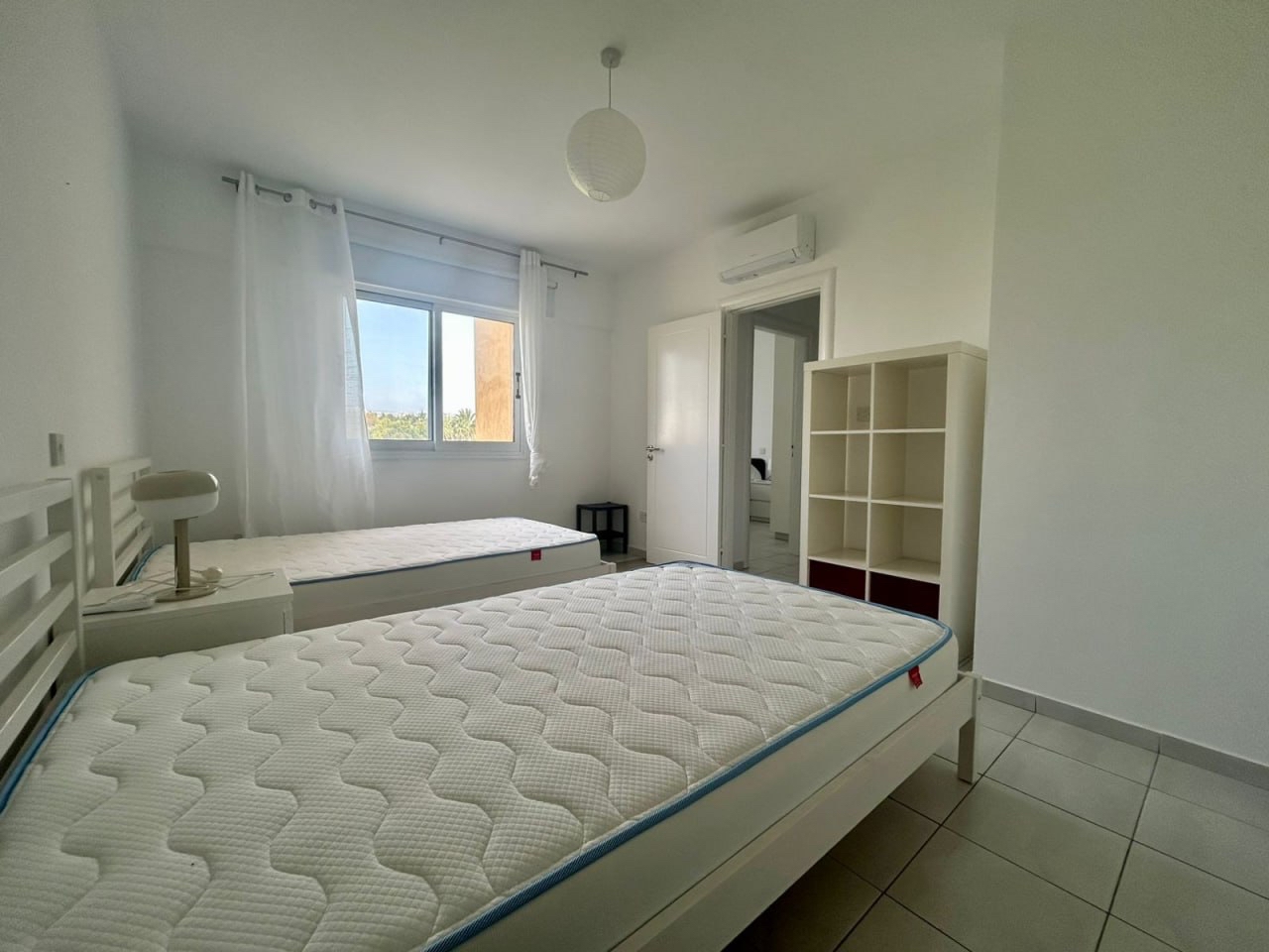 Two-bedroom apartment of 80 m2 for rent in Universal area, Paphos. The apartment includes two bedrooms, a bathroom, a kitchen, a living room, a large veranda, and a storage room. The apartments are fully furnished and equipped with household appliances, underfloor heating and new air conditioning systems in all rooms. The property is located in a residential complex in the Universal area with a communal swimming pool and playground on site. The apartment includes a covered private parking space and a storage room.