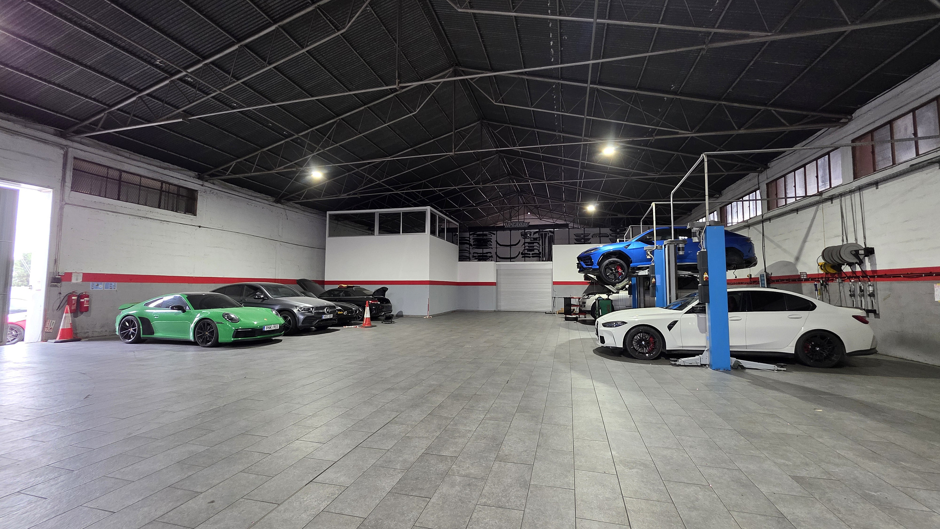 Commercial space of 600 m2 for rent in Omonia, Limassol. The room is a spacious open space, originally designed as a car detailing and pasting studio, with the possibility of comfortably accommodating up to 10-12 cars inside.