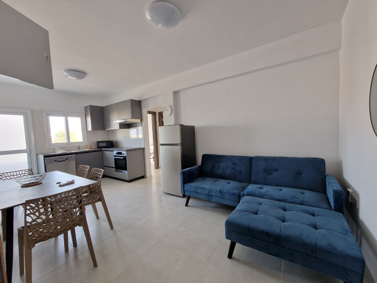 Two-bedroom apartment with a covered area of 67 m2 for rent in the area of Paralimni, Famagusta. The apartment includes two bedrooms, one bathroom, a kitchen, a living room, a 5 m2 balcony, as well as access to the roof garden and covered parking. The property is fully furnished and equipped with household appliances. The apartment is located in the Paralimni area of Famagusta, utilities are included in the rental price. The price also includes Internet and CCTV surveillance system, the facility is newly renovated and is offered for long-term rental.
