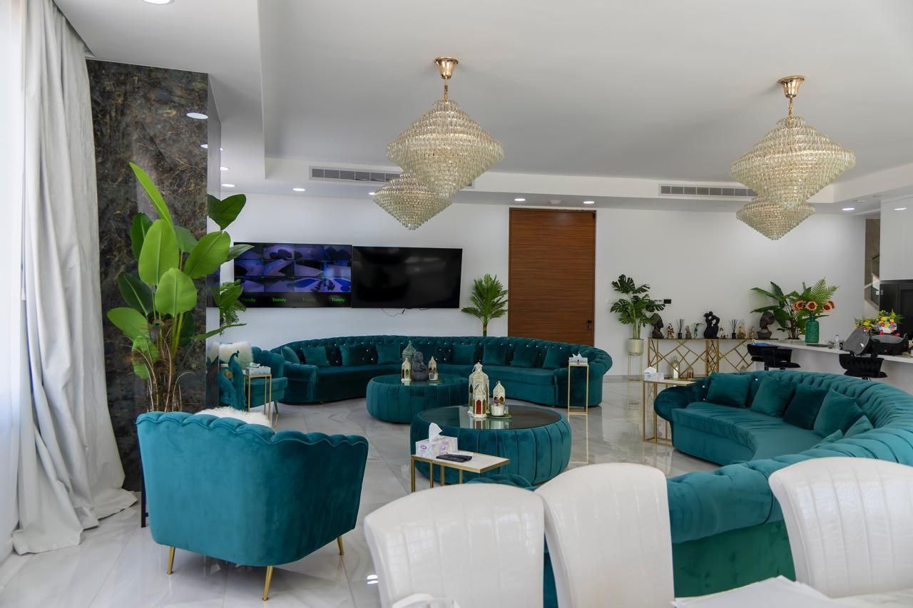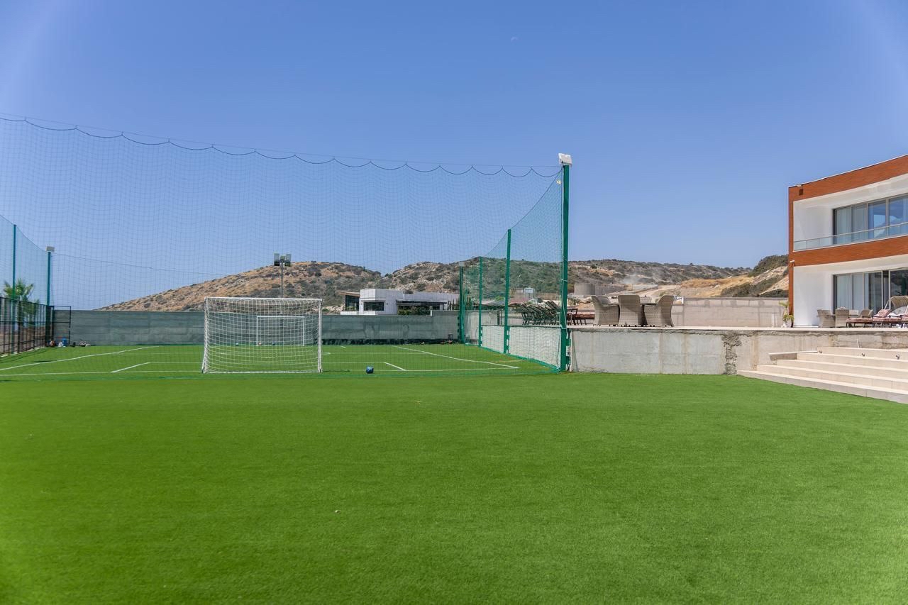 Seven-bedroom villa with an area of 1,350 m2 on a plot of 6,000 m2 in the area of Parekklisia, Limassol is for rent. The villa includes 7 bedrooms, of which 5 bedrooms with private bathrooms and large walk-in closets, 1 guest bedroom and 1 staff room, as well as living and auxiliary rooms. The property is equipped with a photovoltaic system. Additionally, there is a separate kiosk on the street with a barbecue area and a kitchen, a storage room, as well as a garage for parking cars. There is a 530 m2 saltwater swimming pool with a Jacuzzi, a mini football field and a well-maintained garden with fruit trees yielding a variety of fruits.