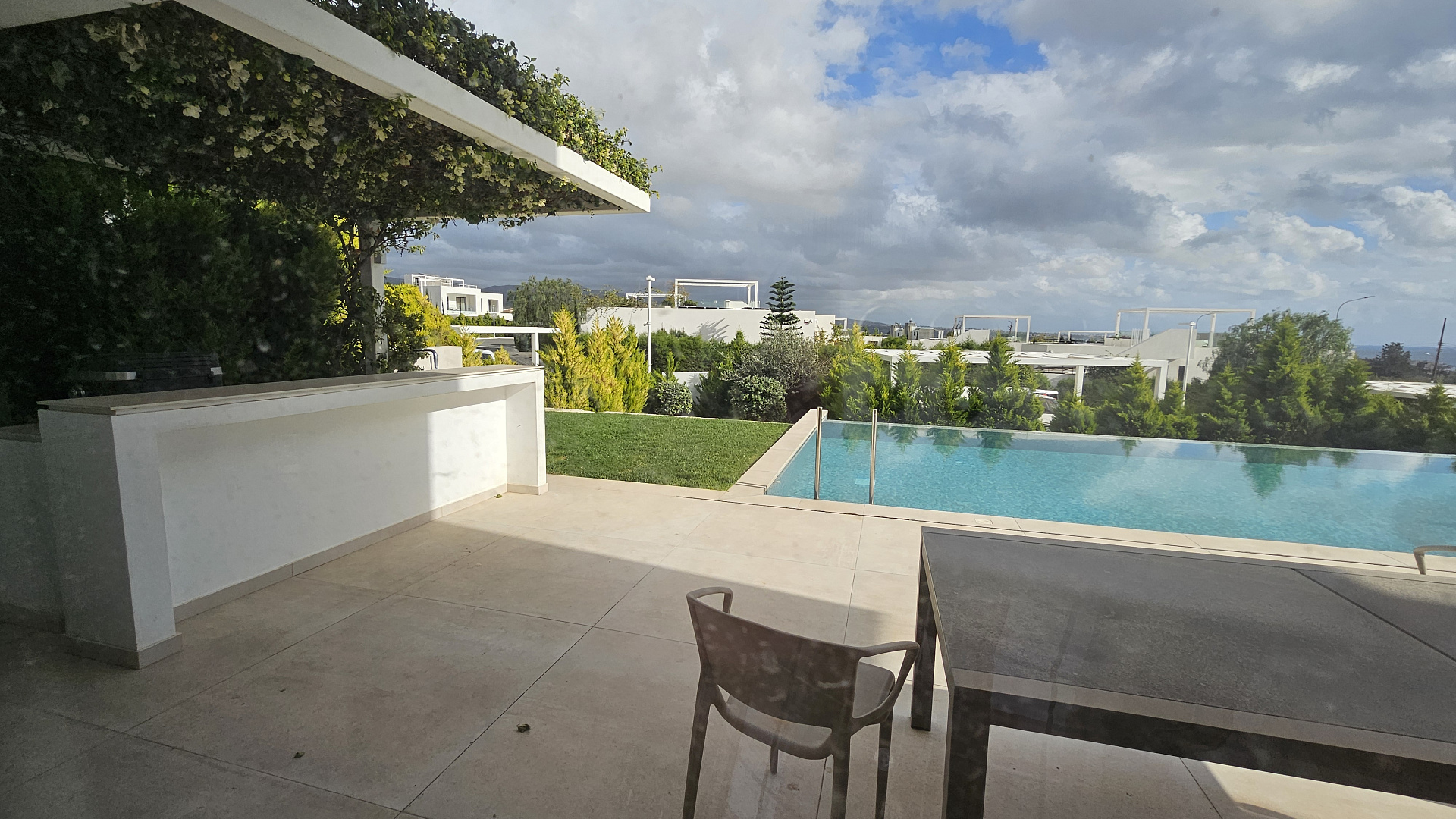 For rent : 4-bedroom villa in a gated complex in Pegeia, Paphos. A modern, newly built villa, fully equipped, with its own swimming pool. The villa is located close to the sea and beach. Living area – 230 m², total area – 260 m², plot size – 400 m². The house features 4 bedrooms and 3 bathrooms. An excellent choice for comfortable living in a prestigious area.