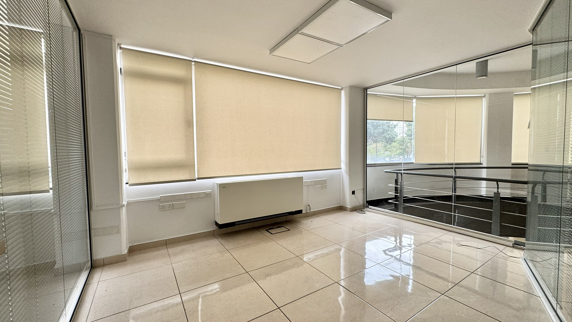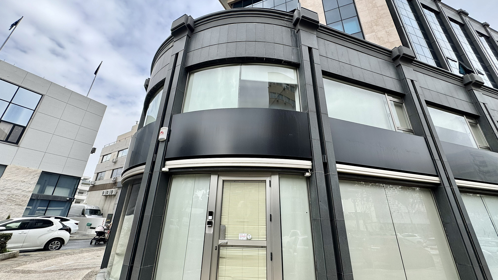 A commercial spase with a total area of 370 m² is available for rent in a prestigious location of Limassol city center. The property comprises 166 sq m of ground floor space, a 148 sq m mezzanine, and 56 sq m of underground storage space. It's central location ensures high pedestrian and vehicular traffic, excellent visibility, and easy access. The space is equipped with six offices, an open space area, two toilets, a server room, a kitchen, a fire and security alarm system with access control, and a safe room for storing valuables and documents, making it ideal for a bank, clothing boutique, or jewelry store. Three covered parking spaces are provided, with an additional monthly rental of €120. The space can be configured to accommodate business needs, with more or fewer offices required.