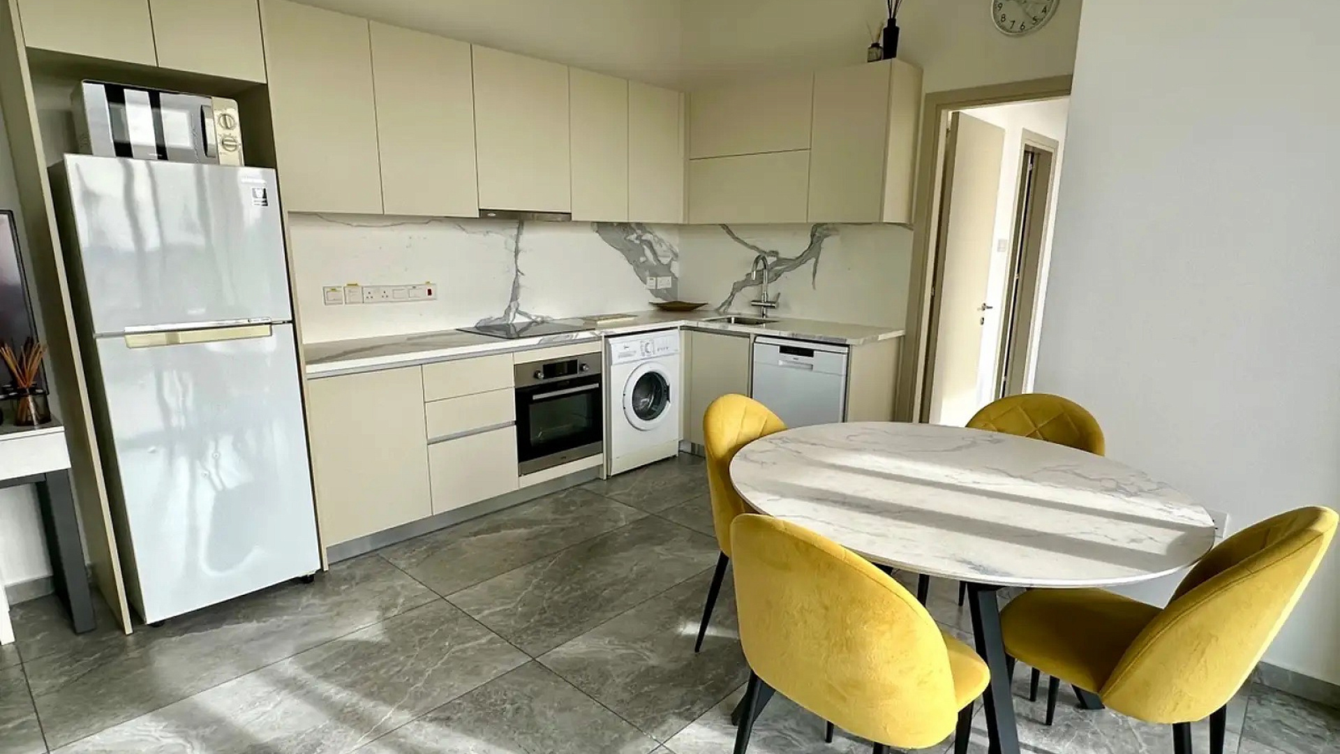 Two-bedroom apartment of 128 m2 for rent in Zakaki area, Limassol. The apartment is located on the 2nd floor. The apartment includes two bedrooms, one of which has an en-suite bathroom, two bathrooms with a shower and a bathtub, a kitchen, a living area, a balcony, a storage room, and a covered parking space. The property is fully furnished and equipped with household appliances, air conditioning is installed in all rooms, the kitchen is fully equipped, mosquito nets are provided in the living room and bedroom. The living area is larger than most two-bedroom apartments, which creates a sense of spaciousness and air, the rooms are filled with natural light and maintained in excellent condition. The spacious veranda of 30 m2 is suitable for relaxing and receiving guests. The house was built in 2022, energy efficiency class A, pets are allowed. The apartment is located on a quiet, gated street with access only for residents, which ensures minimal traffic, privacy and a peaceful atmosphere in the green and well-maintained Zakaki area.