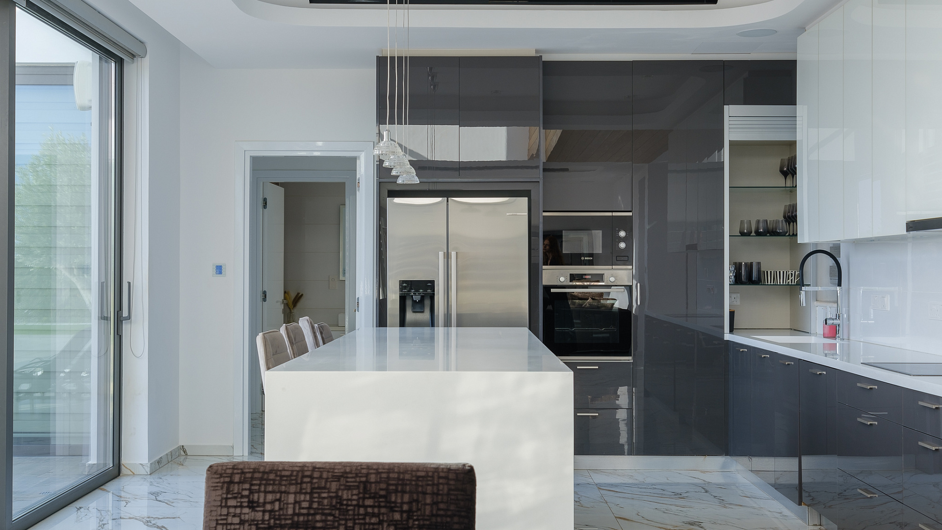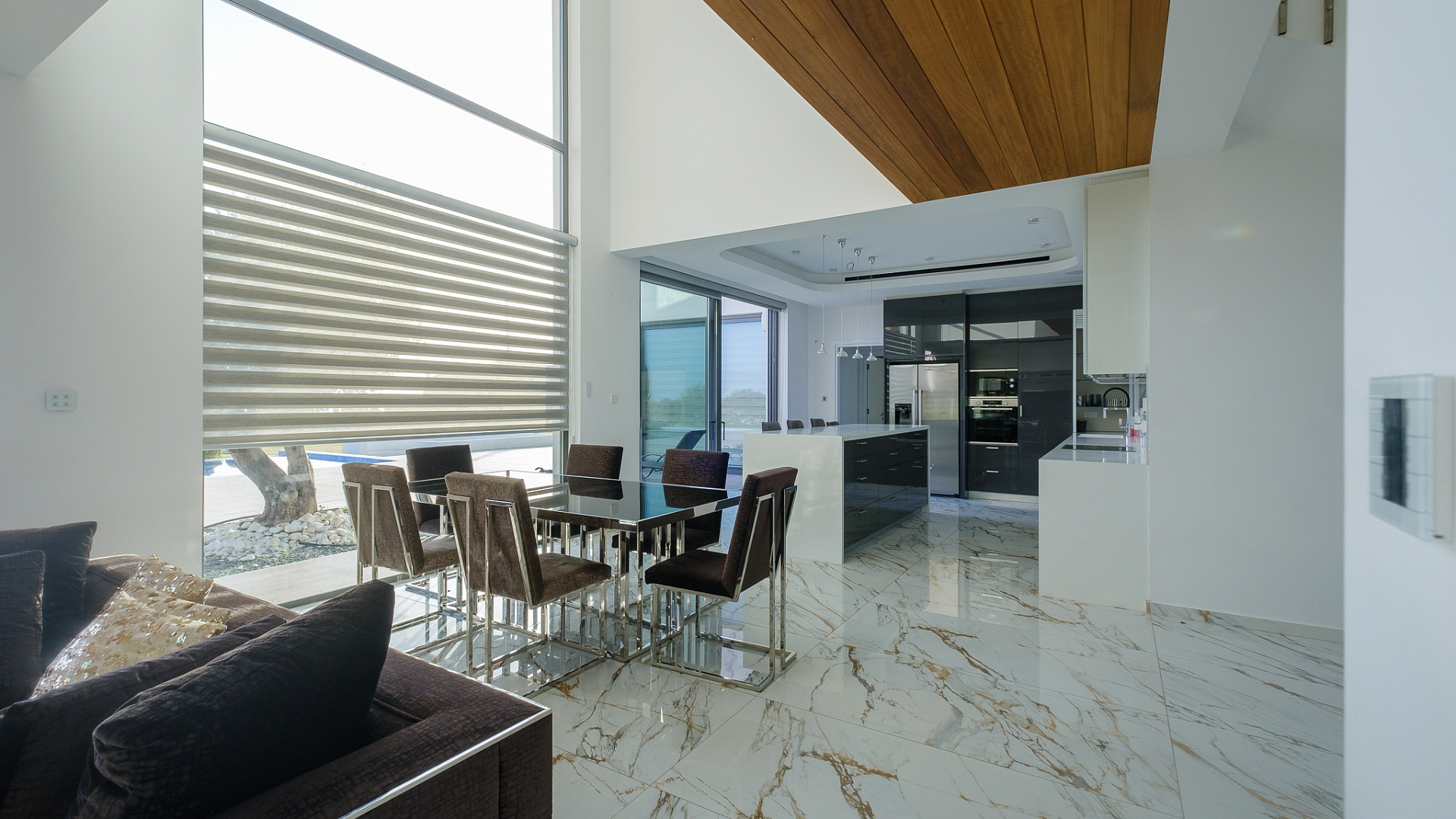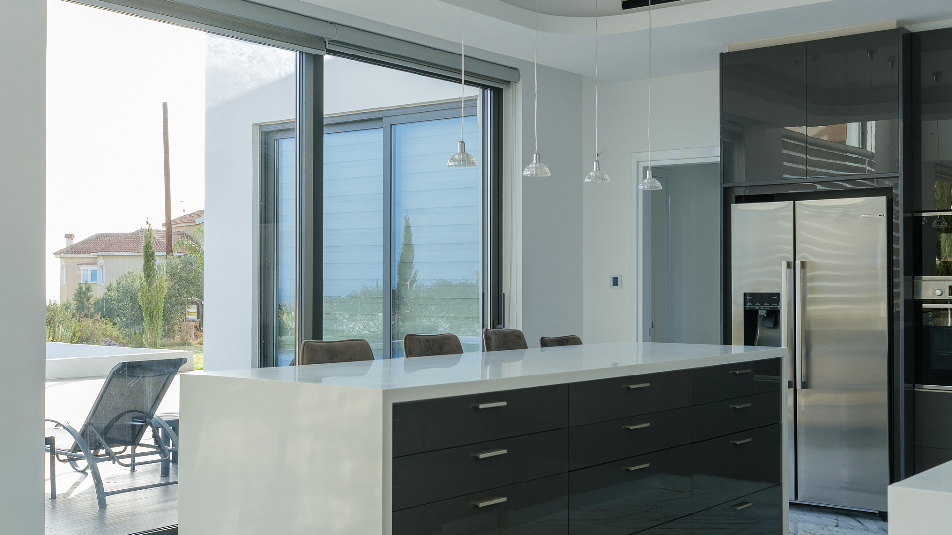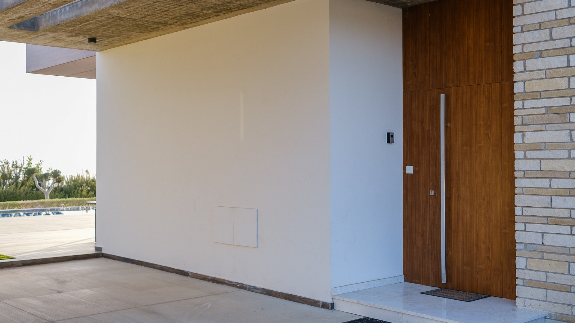 Four-bedroom villa for rent in Pegeia, Paphos, a modern residence built in 2022 with a living area of 220 m2 on a plot of 900 m2, fully furnished and ready to move in from mid-April, with a private overflow pool with built-in steps, a well-maintained landscaped garden, spacious covered verandas and a roof with garden, panoramic views of the the sea, covered Parking, high ceilings, Underfloor heating, modern kitchen with island and corian countertops, separate laundry and storage areas, the house has a modern design and thoughtful layout, suitable for comfortable living in a quiet residential environment close to schools and all necessary infrastructure.