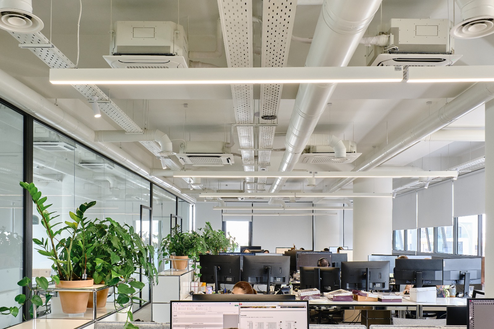The building includes three modern offices — one on each floor — and a shared roof terrace for relaxation and informal meetings, making it an ideal place for business.