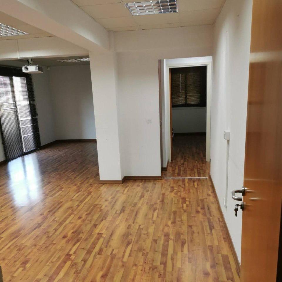 Office space for rent on the 4th floor in the Nicosia center with a total area of 138 m2 with interior spaces of 111 m2. The layout includes a reception room and five more separate offices, two mini-kitchens and two bathrooms, one with a shower, as well as two covered verandas and one outdoor with a total area of 27 m2. There are two covered parking spaces in the basement. The office is in excellent condition, equipped with LED lighting, air conditioning, alarm system and internal wiring.