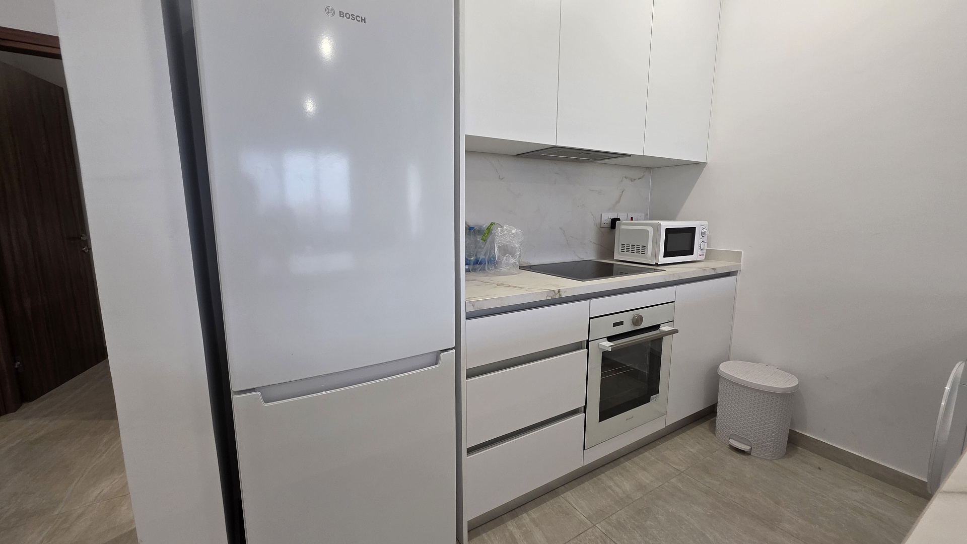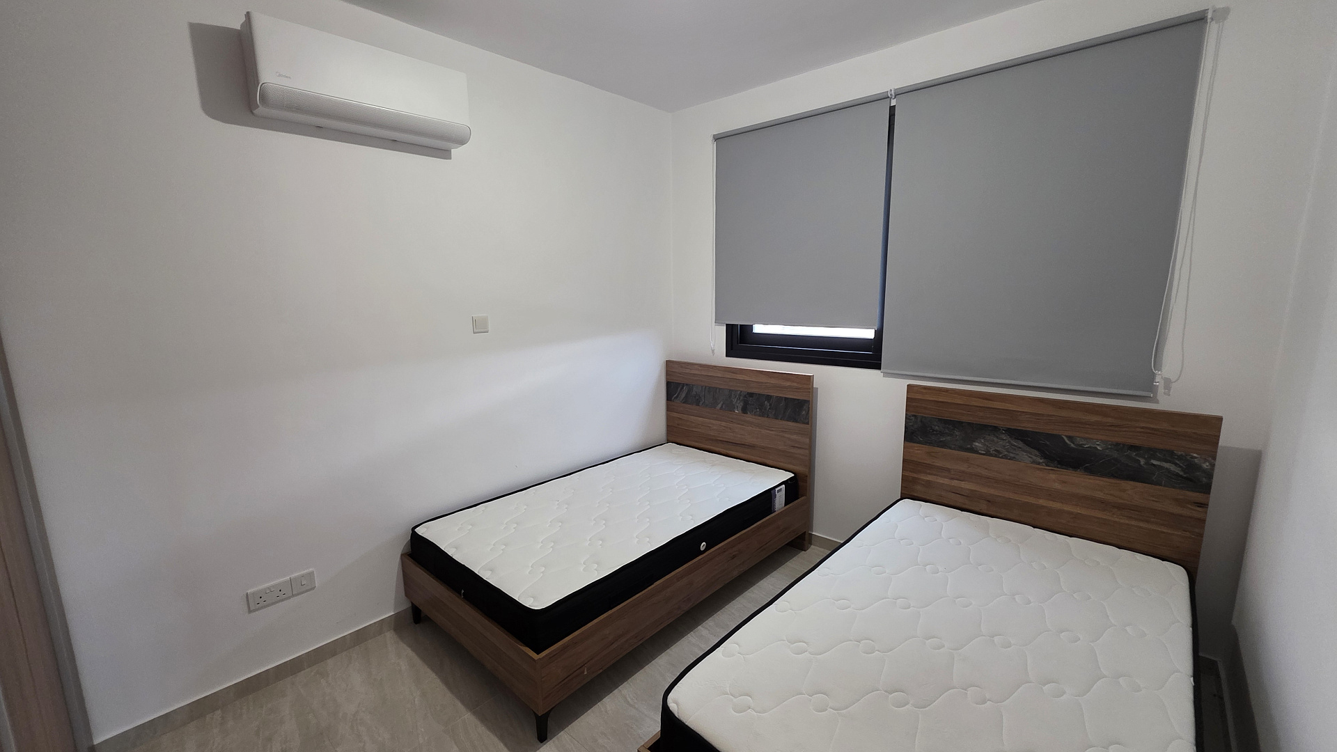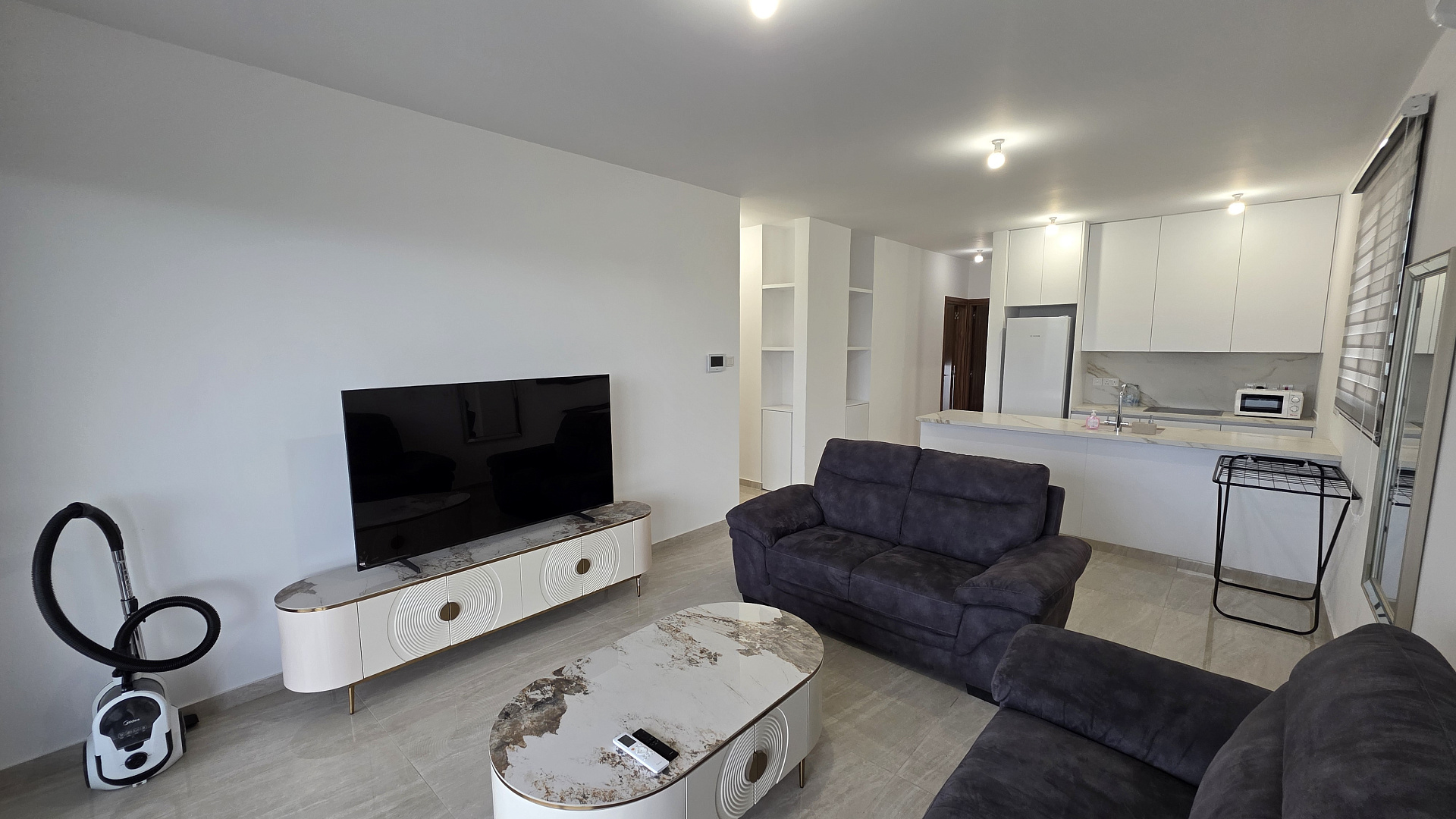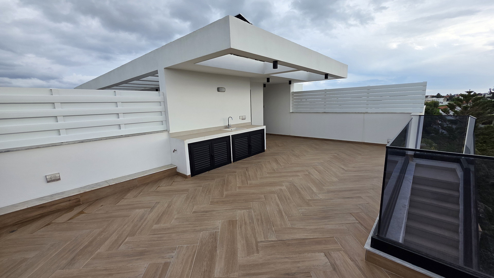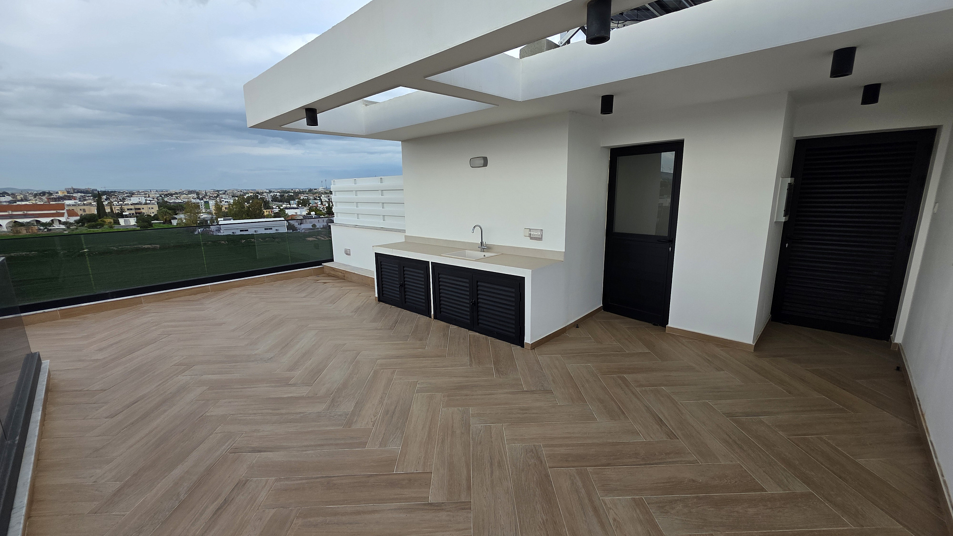 Brand new 2 bedroom penthouse for rent in Kamares, Larnaca. It is the first rental. The penthouse is fully furnished and equipped with necessary household appliances. A living room with an open-plan kitchen-dining room with access to a covered veranda, two bedrooms, two showers, and a spacious roof garden with an equipped toilet. The project provides for a covered parking space and a storage room. A supermarket, a bank, schools, a kindergarten, a gym are in immediate proximity. The beach, cafes and restaurants are only a 5-minute drive away.