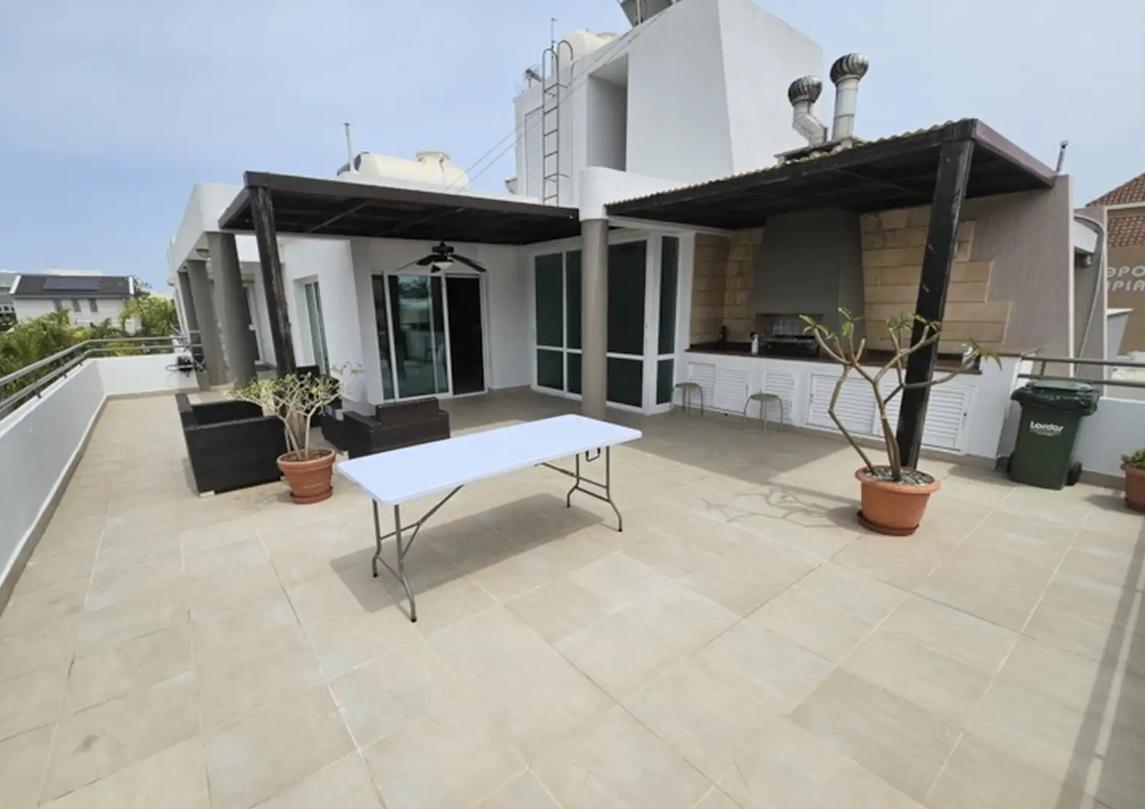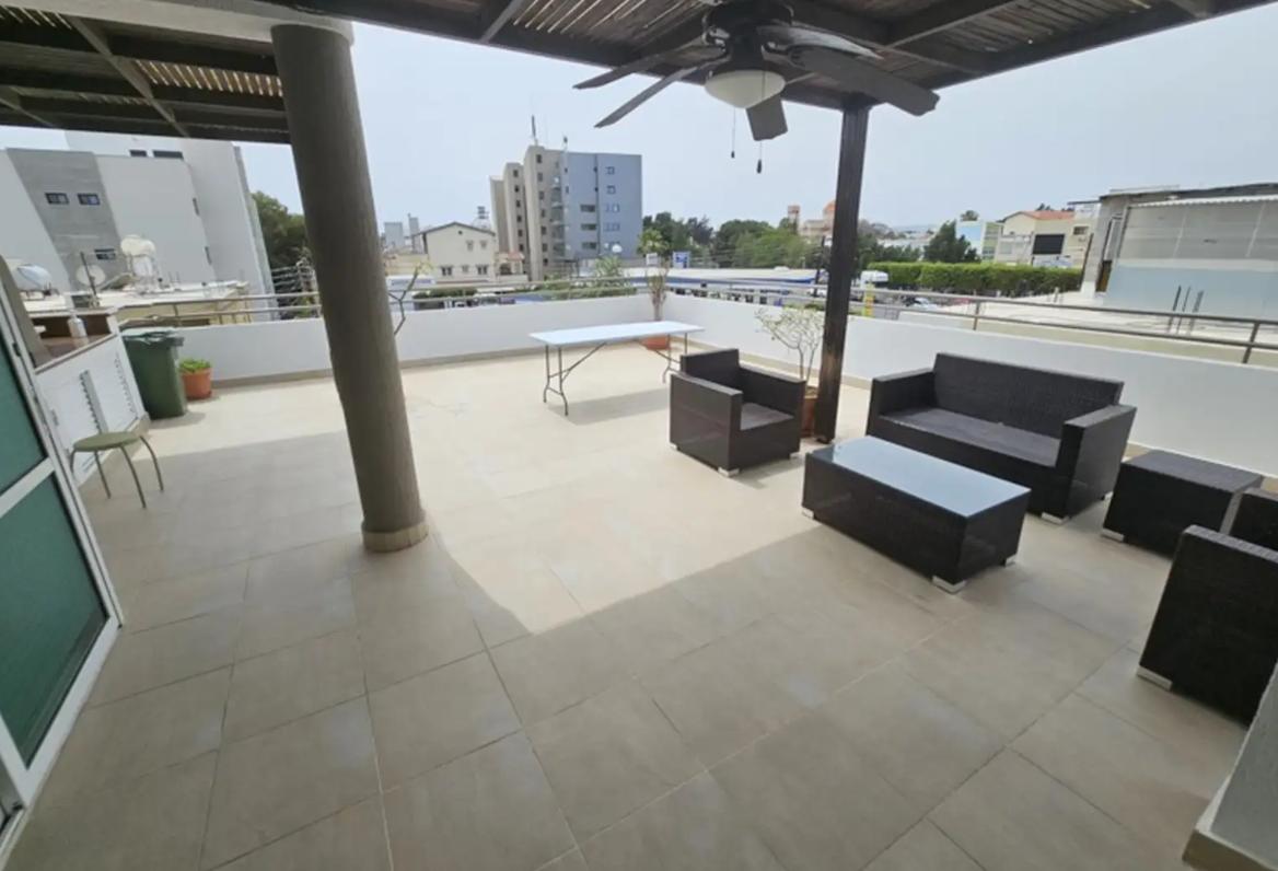 Two-bedroom penthouse for rent in Zakaki, Limassol with a total area of 84 m2 on the 2nd floor of a house built in 2017. The penthouse is equipped with air conditioning in all rooms, partially furnished, with a fully equipped kitchen and household appliances. There is a spacious 75 m2 balcony with a barbecue area, video intercom, internet, storage room and parking. The decoration uses parquet floors in the bedrooms, high-quality windows and modern appliances. The building consists of only 6 apartments. The property is located next to MY Mall, the motorway exit, the sea and Limassol Marina.