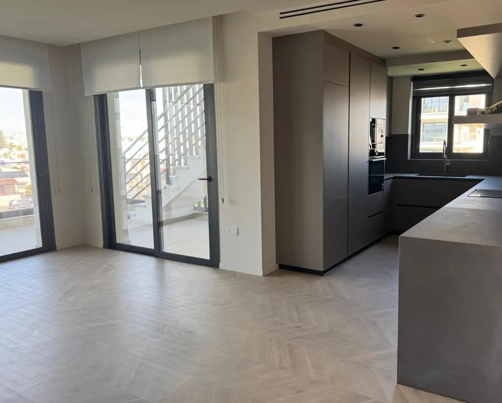 Three-bedroom penthouse of 100 m2 for rent in Kamares, Larnaca, located on the 3rd floor of a new building built in 2025. The penthouse includes three bedrooms and three bathrooms, a spacious living room, a kitchen with installed appliances, a balcony, a storage room and a covered parking space, the building has an elevator. It is equipped with air conditioners in all rooms and has a high energy efficiency class A. An additional advantage is the private roof garden, as well as the convenient location next to the K Cineplex and all necessary urban infrastructure.