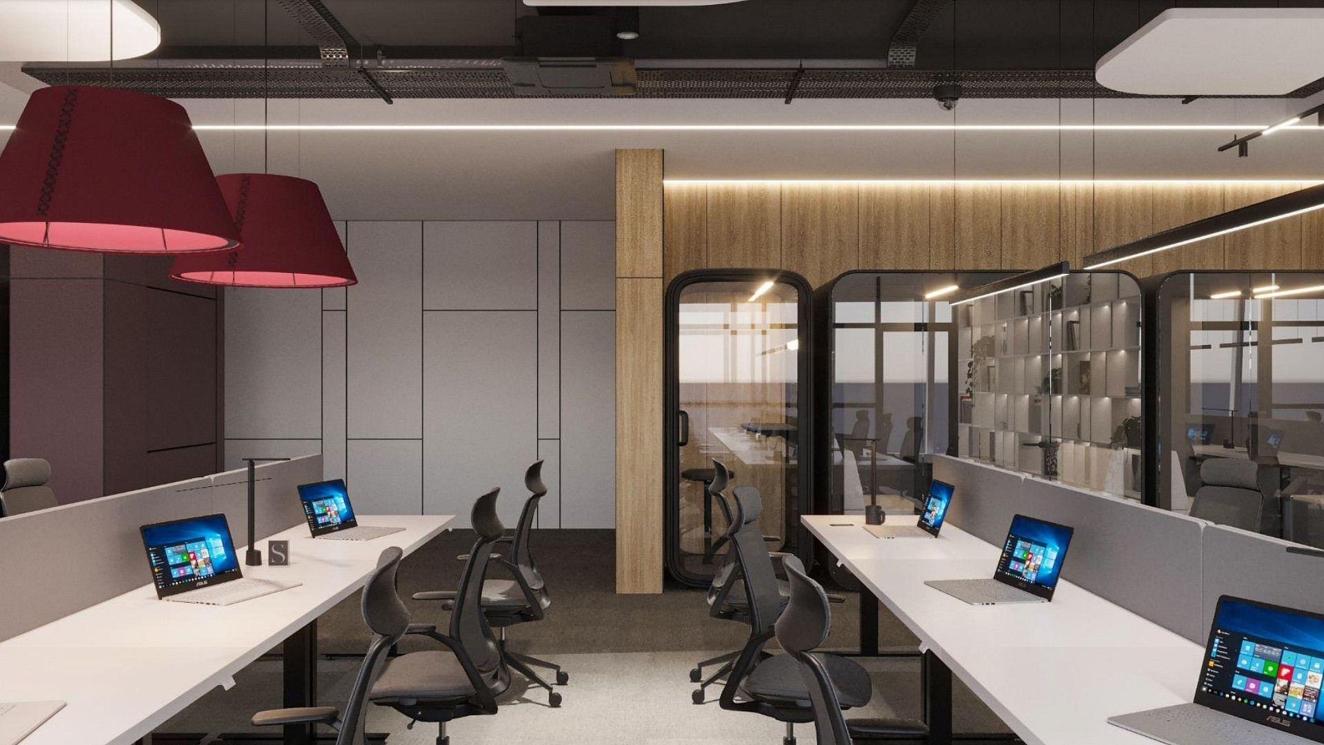 An office for rent on the 1st floor in Kapsalos, Limassol with a total area of 470 m2, of which 410 m2 is covered, in a modern business center built in 2023 of energy efficiency class A. The space is designed in a modern style and designed for comfortable team work: the spacious open plan area is harmoniously complemented by four separate offices and a full-fledged conference room. There are two server rooms, four bathrooms and two equipped coffee stations on the floor. Double-glazed windows, raised floors and noise-insulating block carpet are installed, which ensures a high level of comfort and functionality, and there is also a private terrace. The office is offered unfurnished and can accommodate 50-70 employees, with 5 covered parking spaces and an additional 15 outdoor parking spaces within walking distance. The building has a reception and a shared roof terrace, accessible to the staff of the business center.