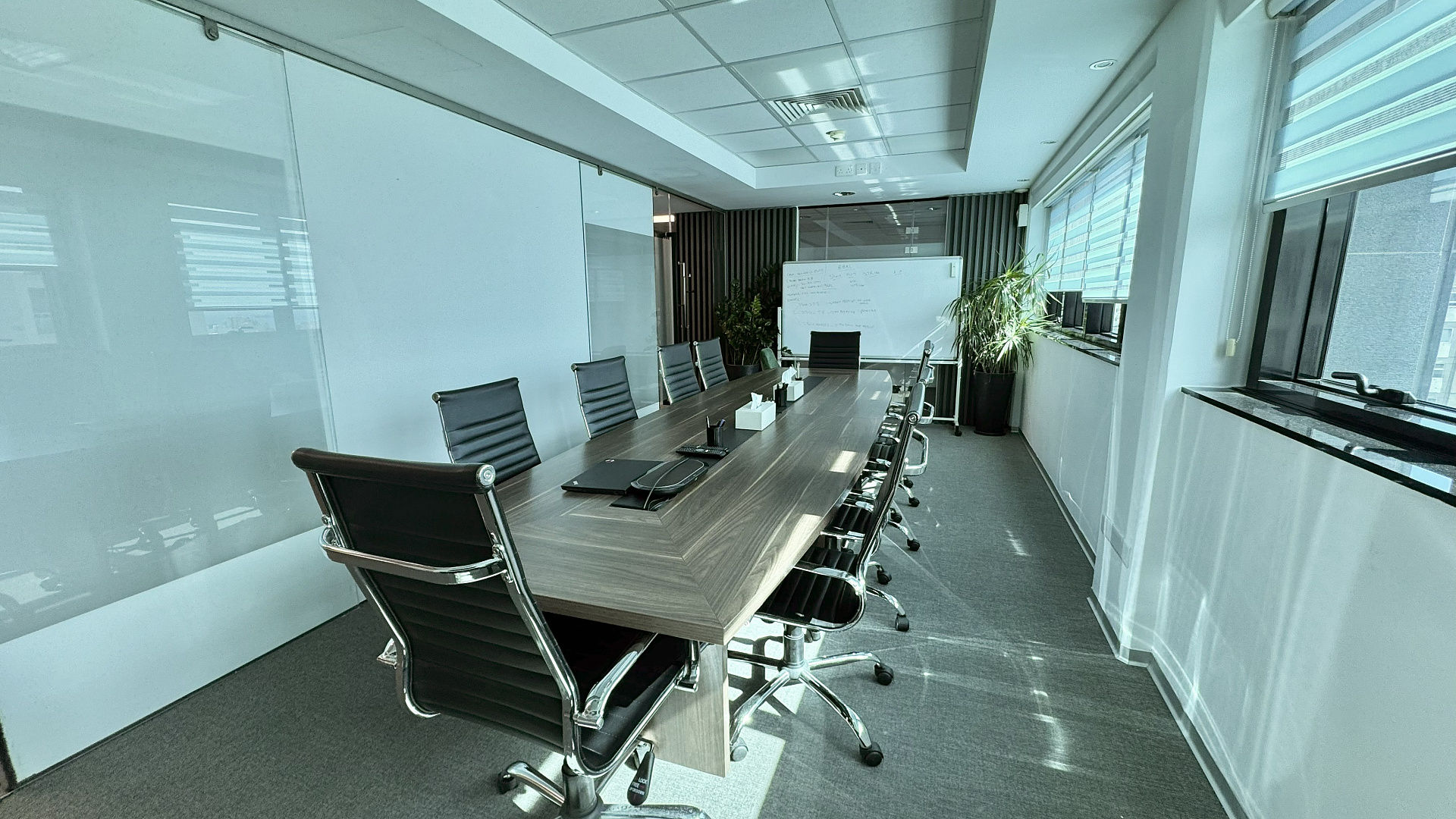 Office for rent with an area of 645 m2 in Agia Zoni, Limassol. The office is located on the 5th floor of the building and includes 14 separate offices, 2 outdoor areas, a server room, a conference room, 6 toilets, 2 kitchens and 2 separate entrances. The room is offered unfurnished, equipped with a security system, while some of the furniture is available for purchase. The floor has a raised structure and a noise insulation coating, 4 indoor and 1 outdoor parking spaces are included in the price. The office can accommodate up to 50 people.