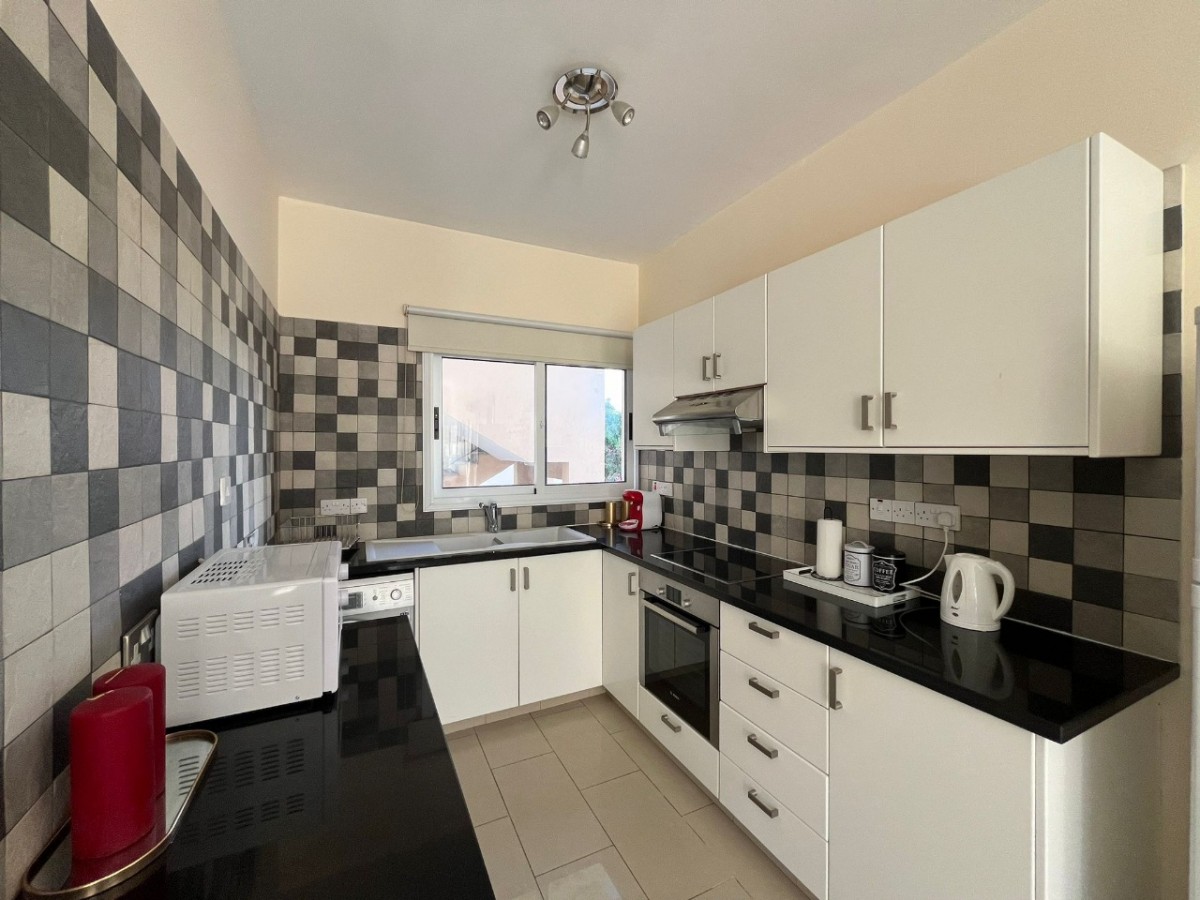 Two-bedroom apartment of 145 m2 for rent in the area of Kato Paphos, Paphos. The apartment includes 2 bedrooms, a spacious open-plan living room, a fully equipped kitchen, a bathroom and a private balcony with sea views. The apartment is fully furnished and equipped with all necessary household appliances. The property is located just 300 m from the sea and within walking distance to all necessary infrastructure, including shops, restaurants, cafes and public transport.