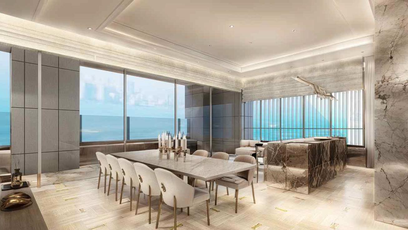 An exclusive designer penthouse for rent in the area of Agios Nicolaos, Limassol, located on floors 21-22, is a unique living under the sky space, equally suitable for both residential and office use due to its versatile engineering and wiring. The 270 m2 main space is complemented by a 15 m2 terrace and 177 m2 common areas, creating the feeling of a large-scale and status facility designed for a high level of comfort and representativeness. The key feature of the penthouse is a private Roof Garden with an area of 305 m2, located at an altitude of about 100 meters, which turns the roof into a real urban oasis with landscaped landscaping, relaxation areas and the possibility of organizing lounge spaces, meetings, outdoor dinners or relaxation areas. The roof space is designed as a multifunctional environment with walking paths, secluded corners, places to relax and spectacular panoramic views of the city, creating the effect of complete separation from the hustle and bustle of the city while maintaining the central location. The interiors and exteriors of the penthouse form the image of a premium, modern and exclusive facility that combines urban aesthetics with the feeling of a private resort, making it attractive for both a private residence and a high-level executive office.