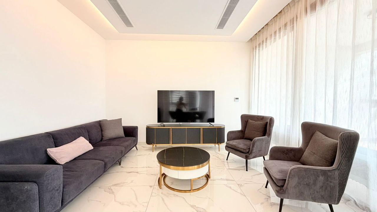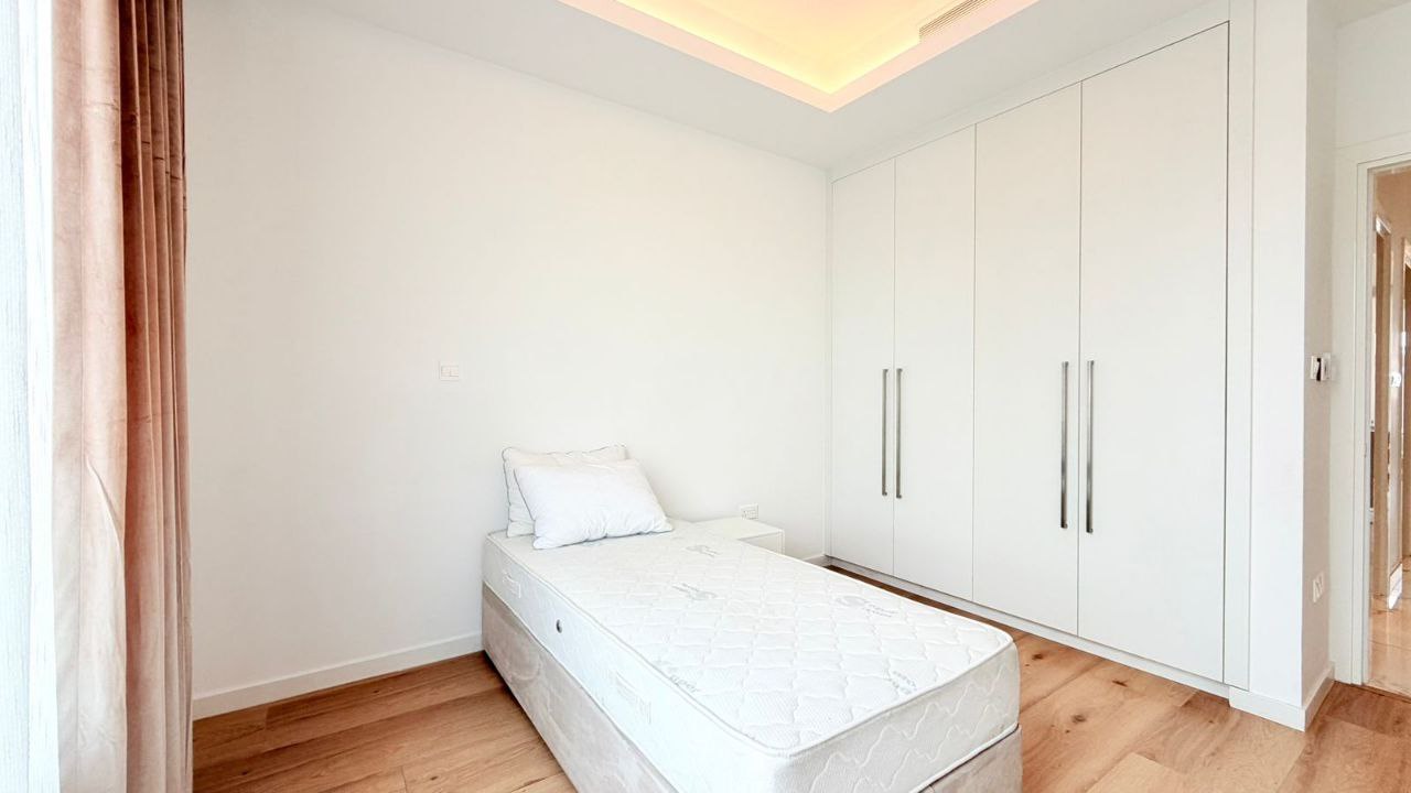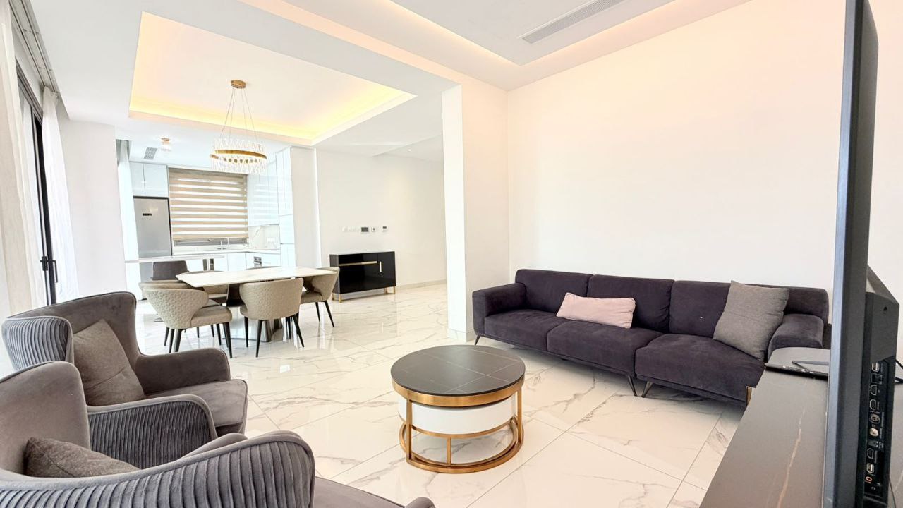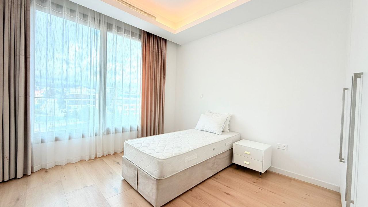 For rent a four-bedroom penthouse of 118 m2 with a covered veranda of 35 m2 and a roof terrace of 105 m2 in the area of Agios Athanasios, Limassol. The penthouse is equipped with a central underfloor heating system, an armored entrance door, a video intercom, is fully insulated and has its own storage room and a covered guarded parking lot. The property is located in a residential complex with a luxurious entrance lobby, a gym for residents only, an overflow pool and a children's pool, a BBQ area and a playground, as well as facility management services.