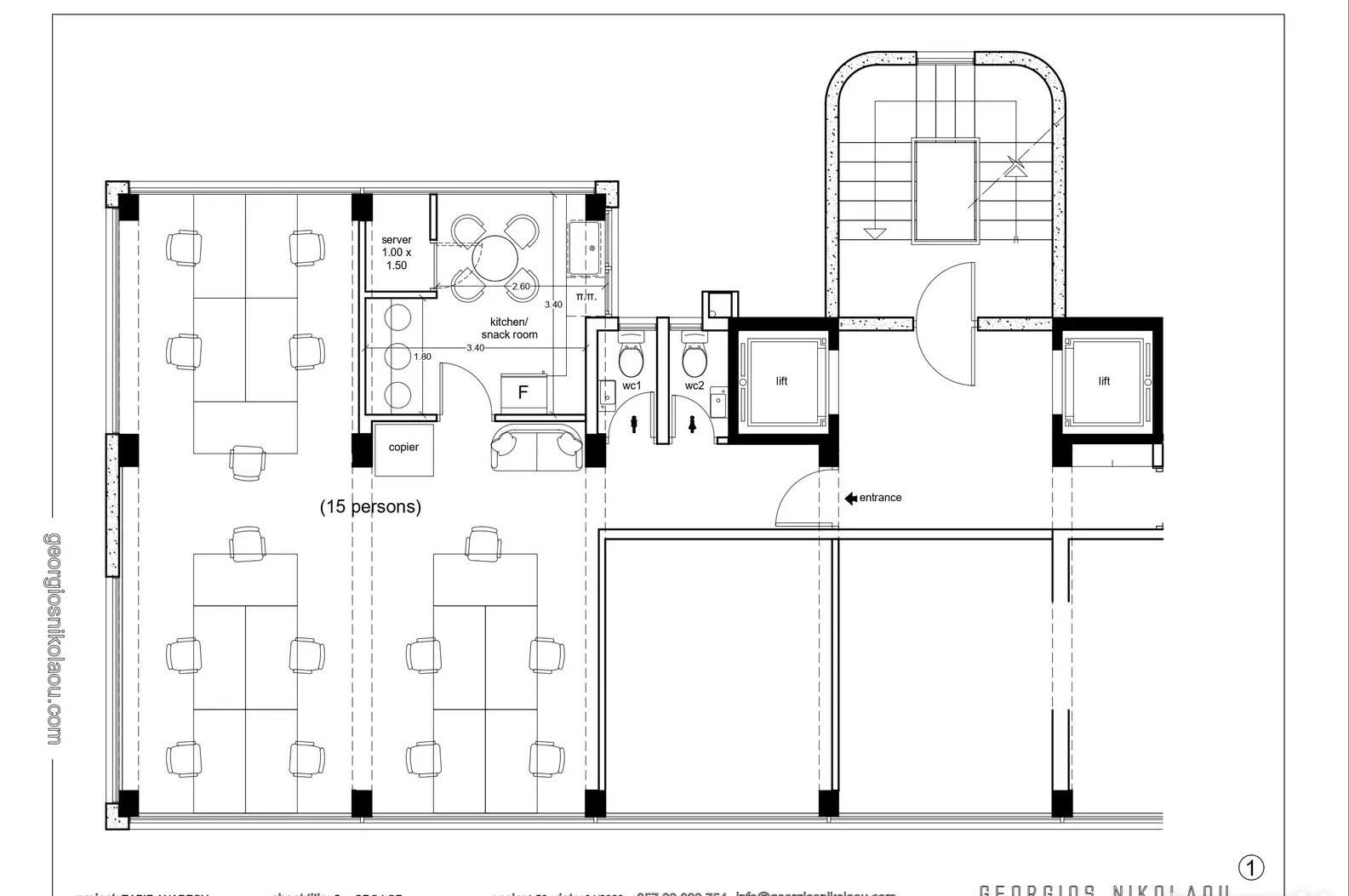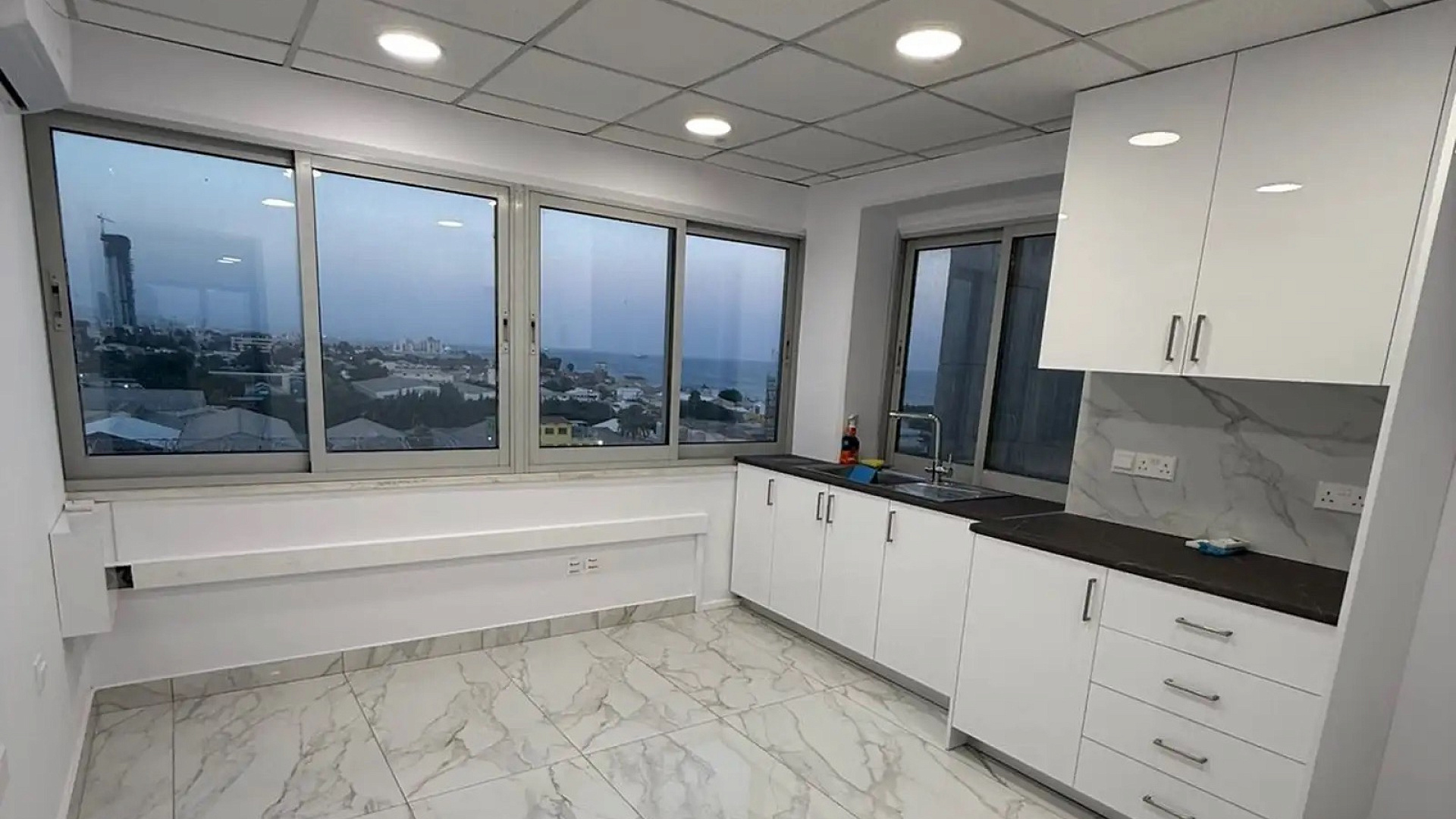 An office of 90 m2 for rent in the area of Tsiflikoudia, Limassol. The office includes an open-plan open space for up to 12 people, 2 toilets and a spacious kitchen. The office is located on the 5th floor. The property has been completely renovated, equipped with an elevator, an alarm system, a new structured cabling system, connections for fire alarms, CCTV and card access systems are provided, the building is ready for fiber optic connection, round-the-clock secure access is provided.