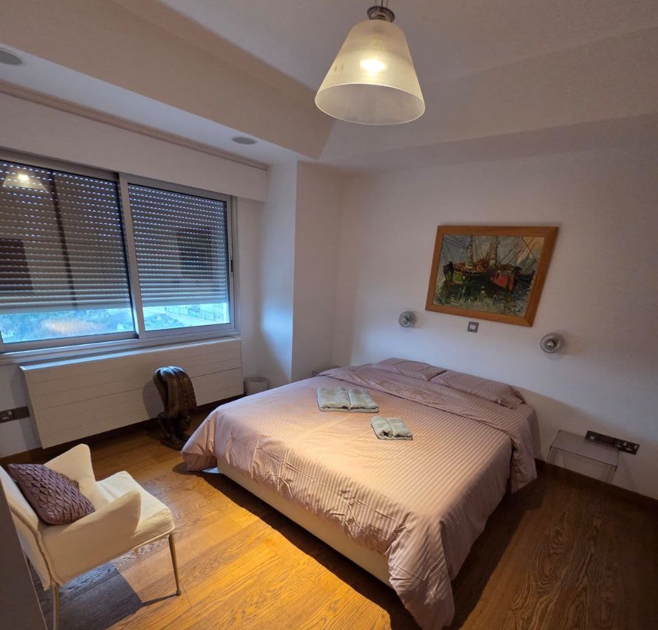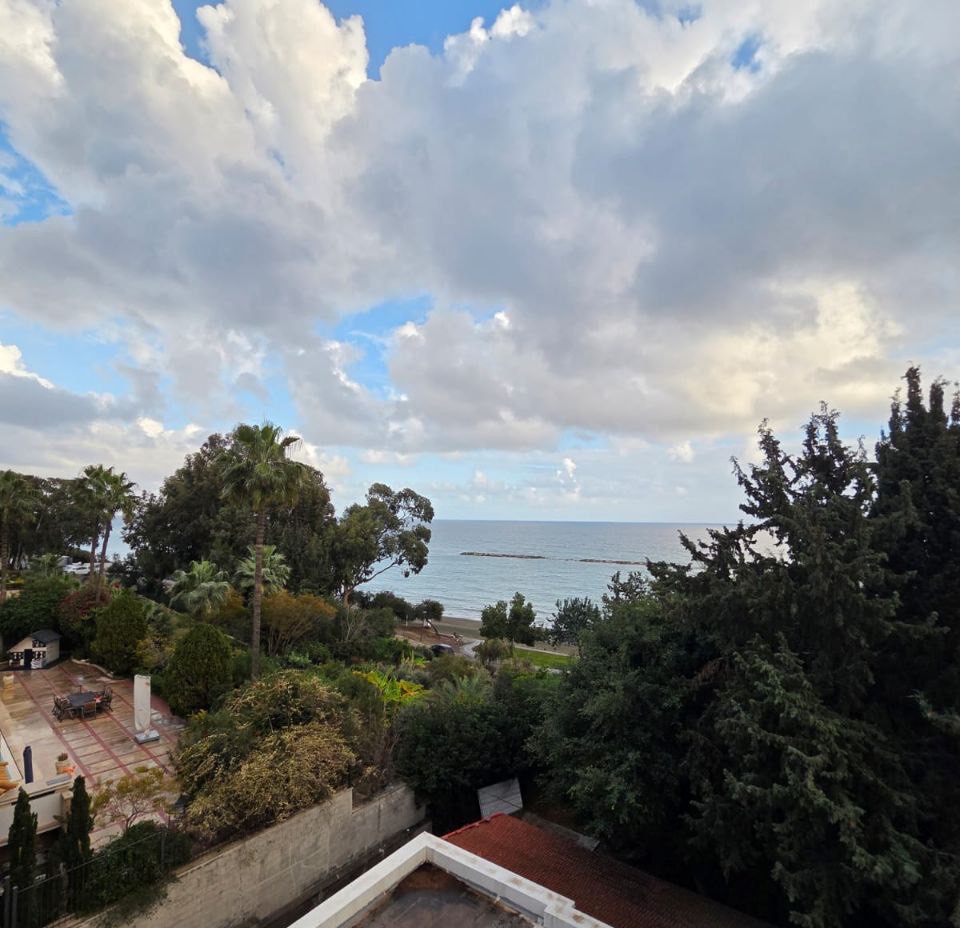 For rent a three-bedroom apartment of 140 m2 in the area of Agios Tychonas, Limassol. The apartment includes 3 bedrooms, 2 bathrooms, a living area, a kitchen and a covered parking. The apartment is located on the 2nd floor. The property is fully furnished, equipped with central heating and VRV air conditioning. The property is located on the first line of the sea. The total area is 160 m2, of which 140 m2 is the interior area.