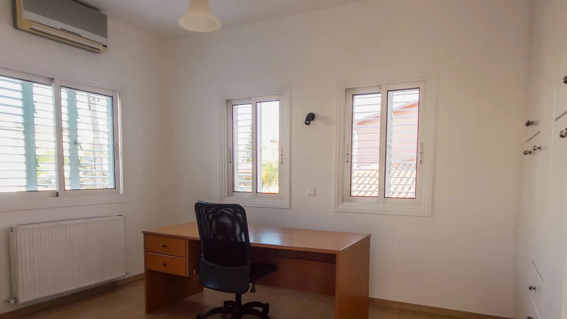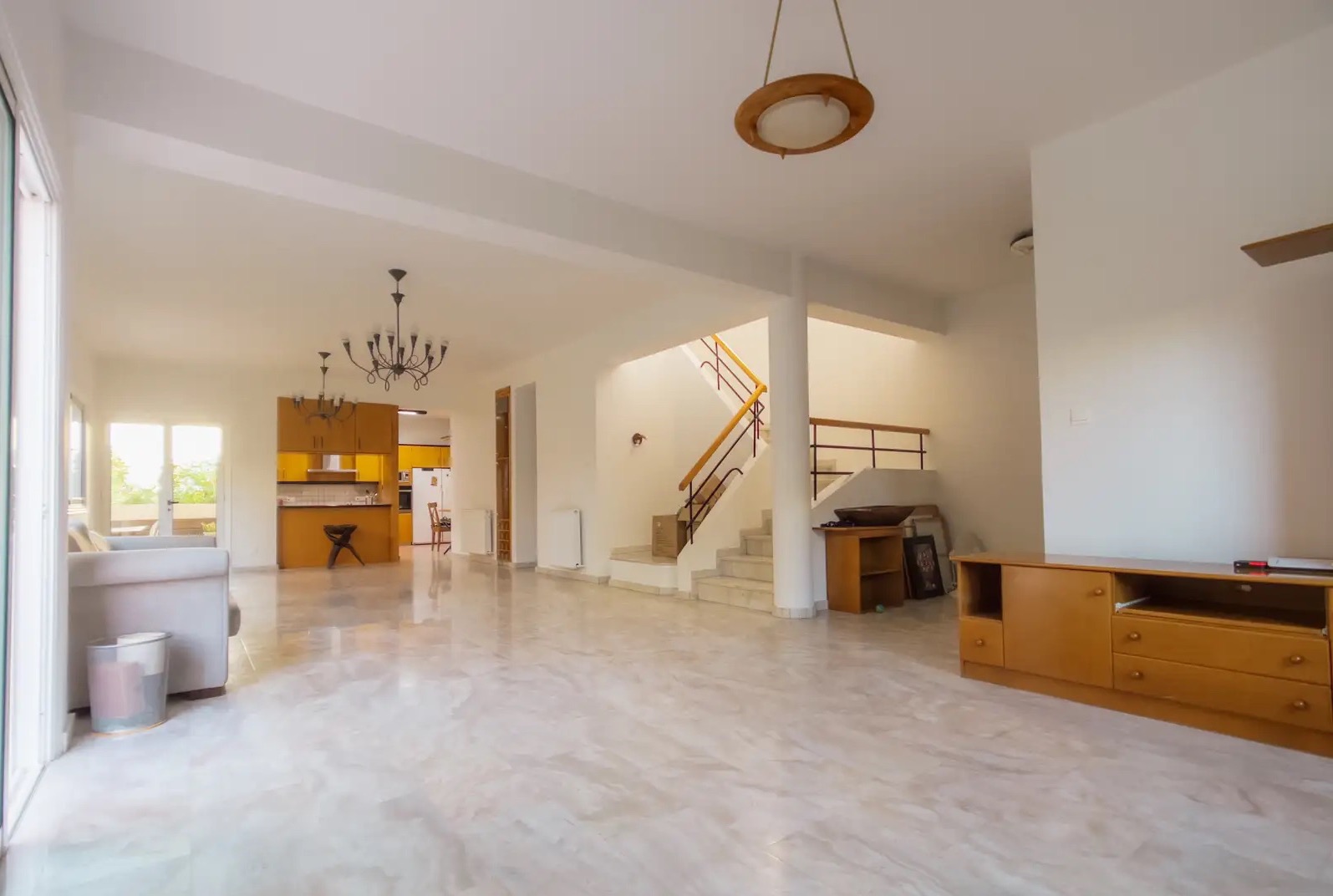 An exceptional multi-level family house with 4 bedrooms for rent in the prestigious area of Engkomi, Nicosia. Located in a quiet and safe area, the house is conveniently located close to various amenities and services such as schools, shopping malls, supermarkets, pharmacies, cafes, gym and more. Recently renovated both inside and out, this house offers modern comfort in a great location. On the ground floor there is an open-plan living/dining room, a spacious fully equipped kitchen, a guest toilet and a built-in closet for additional storage space. There are 4 good-sized bedrooms on the upper level, with the master bedroom having its own bathroom. All bedrooms have spacious closets. In addition, there is a good-sized attic on the upper level that can be used as a babysitter's room, a playroom or a storage room.