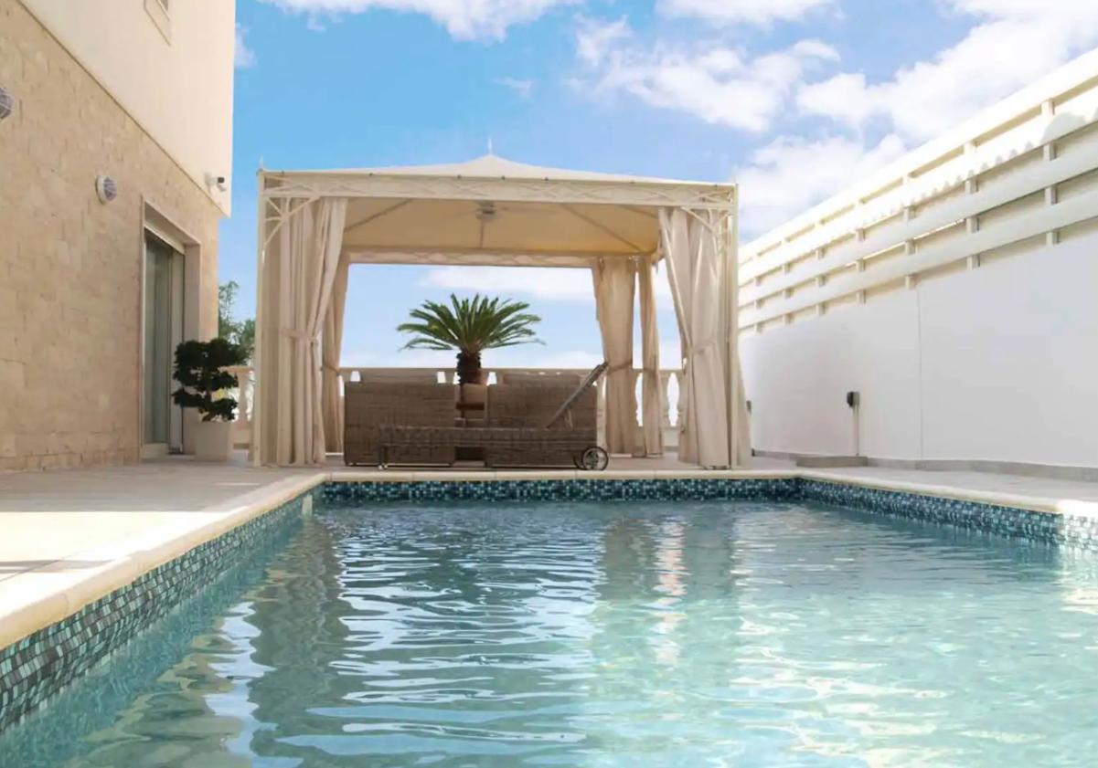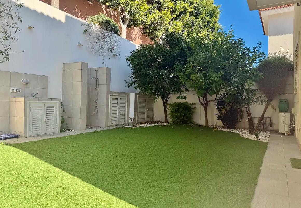 Four bedroom house for rent in Mouttagiaka, Limassol. A spacious Mediterranean style villa of 272 m2 on a plot of 327 m2 is located in a well-maintained residential complex just a 4-minute drive from the sea. The house is distributed on three levels and includes three bedrooms plus an office/bedroom on the ground floor, three bathrooms, a guest toilet and an outdoor shower. A spacious open-plan living and dining area is connected to a fully equipped kitchen, a roof-level veranda with an internal kitchenette, and several balconies and terraces, including a spacious roof veranda. The house has air conditioners in all rooms and electric heaters, there are storage rooms. There is a private swimming pool, a well-kept garden with fruit trees, as well as a covered garage for two cars and an alarm system. The house is located in a convenient location with quick access to the highway and proximity to all necessary infrastructure — schools, shops and city services.