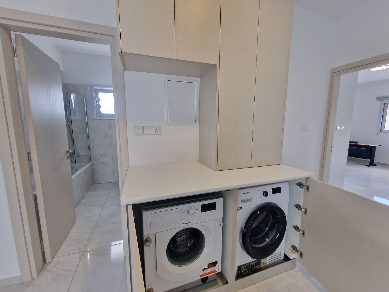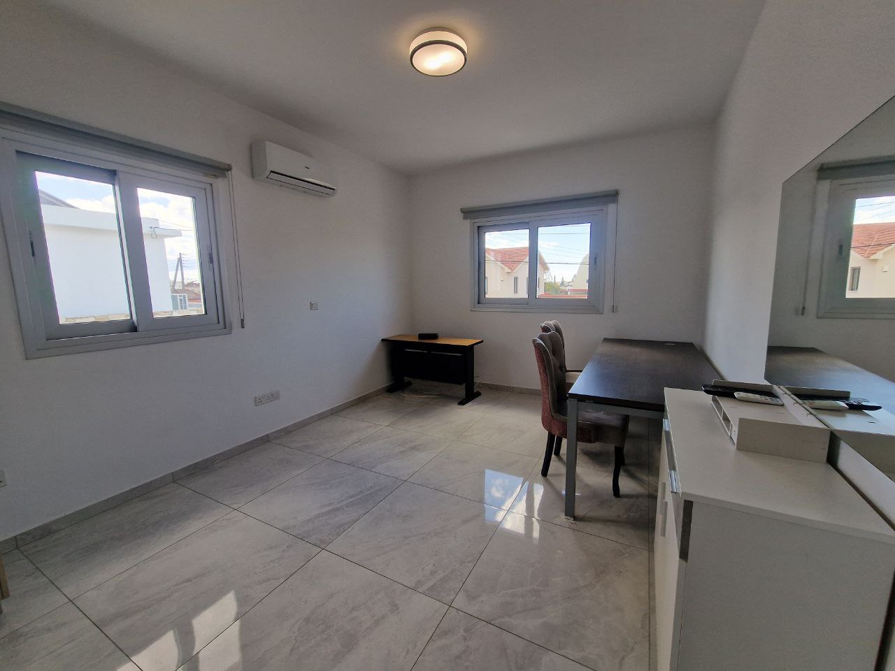 For rent a four-bedroom villa of 200 m2 on a plot of 250 m2 in the area of Aradippou, Larnaca. The villa includes 4 bedrooms, 2 bathrooms, a kitchen and a living room, as well as a covered parking. The residence is fully furnished, equipped with new household appliances and equipped with an air conditioning system in all rooms. The property was built in 2021, has an energy efficiency class of B+ and is located in a quiet area with developed infrastructure nearby, just a 10-minute drive from the highway.