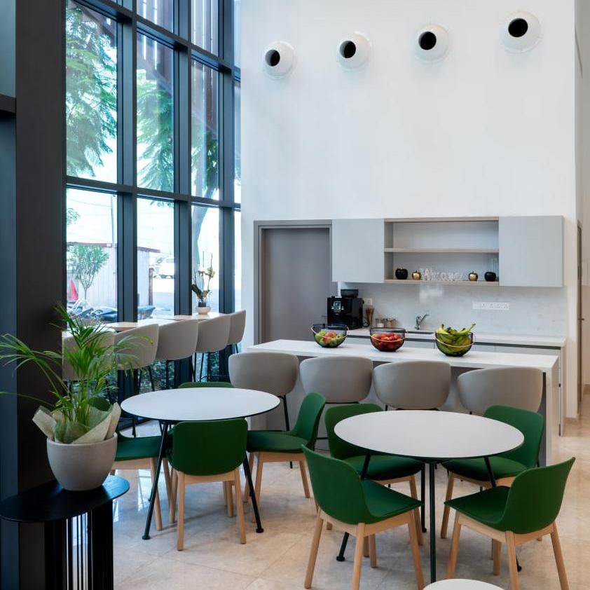 For rent a 3, 4, 5 floors in a business center located in the heart of Limassol, within walking distance from the business and shopping area of Limassol, the promenade and the marina. The building consists of 6 spacious modern offices with open verandas, green areas, a common cafe-lounge area on the 5th floor and a gym on the 6th floor. Bright modern design, excellent configuration and first-class build quality make the tower visually attractive, offering comfort and a cozy atmosphere for work.
