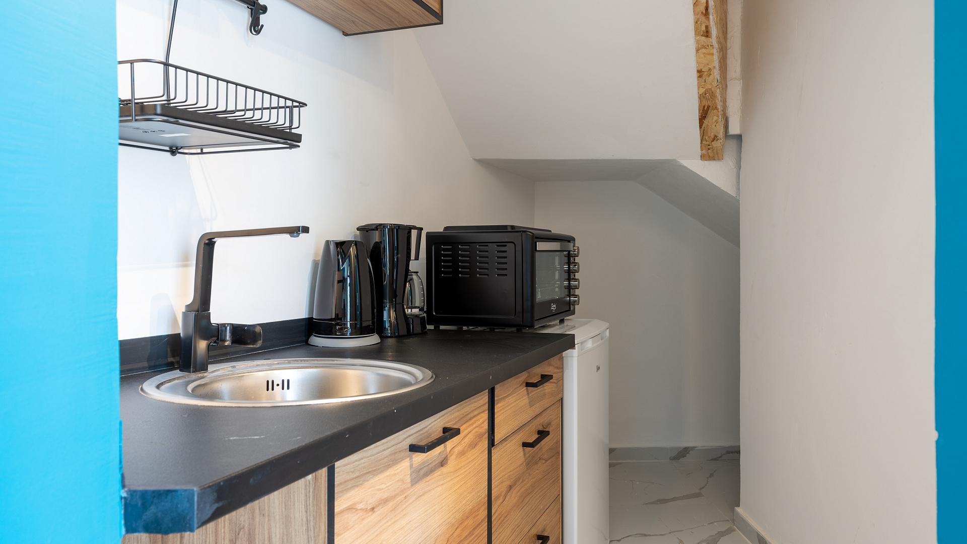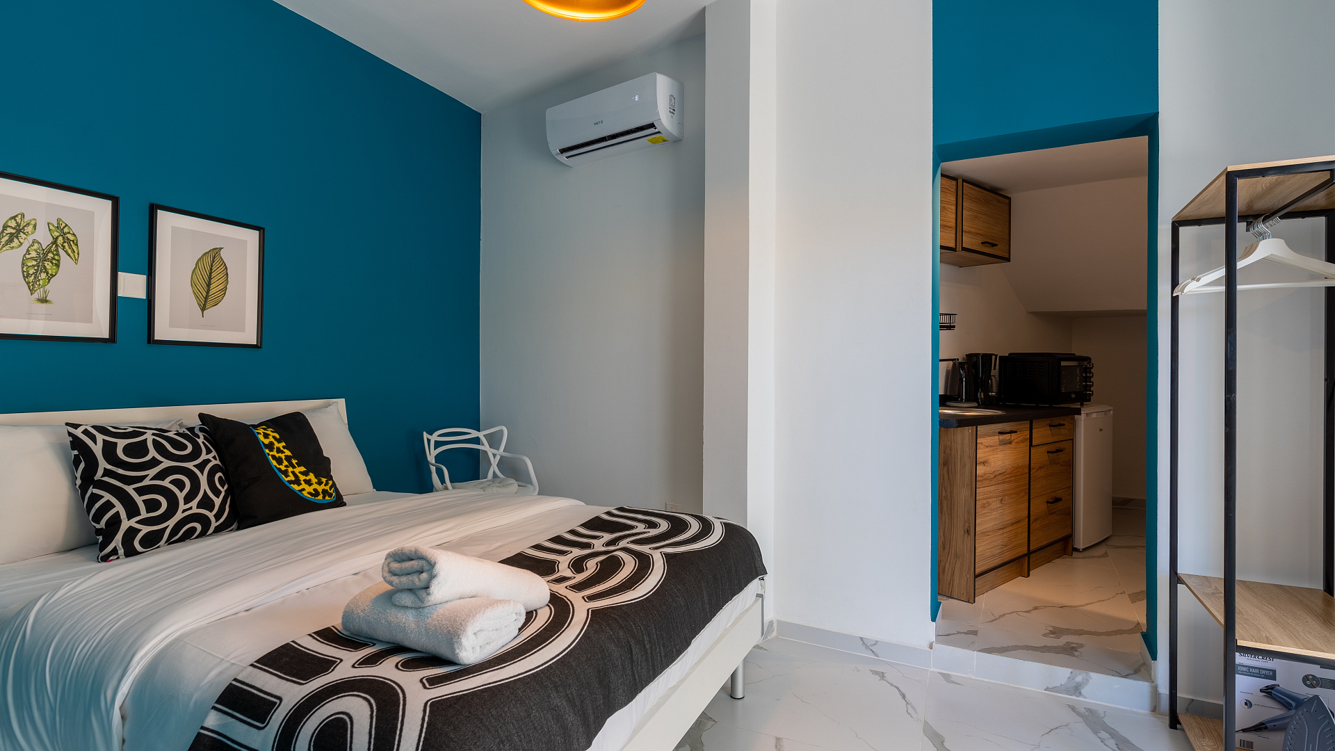 One-bedroom apartment for rent in the Town Center area, Larnaca. The apartment includes 1 bedroom, 1 bathroom with a toilet, a kitchen and a living area.