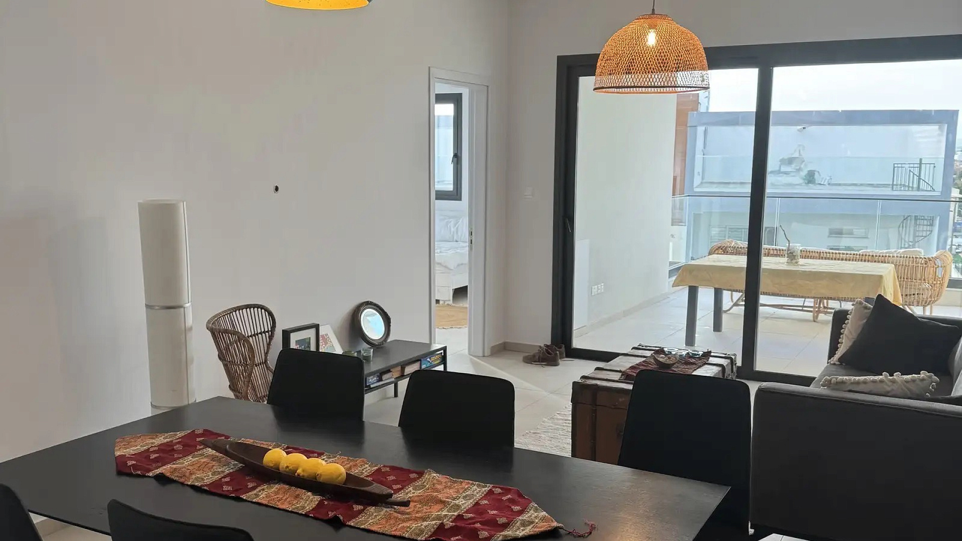 Three-bedroom 123 m2 penthouse for rent in Livadia, Larnaca. The penthouse includes 3 bedrooms, 2 bathrooms, balconies and a spacious 63 m2 roof garden. The apartment is located on the 3rd floor. The property is fully furnished and equipped with air conditioning in all rooms. The building was built in 2026, energy efficiency class A. The complex has a communal swimming pool, barbecue area and gym. The property is located in the very center of Livadia, a few steps from Stelios. Pets are allowed. A covered parking space is provided.