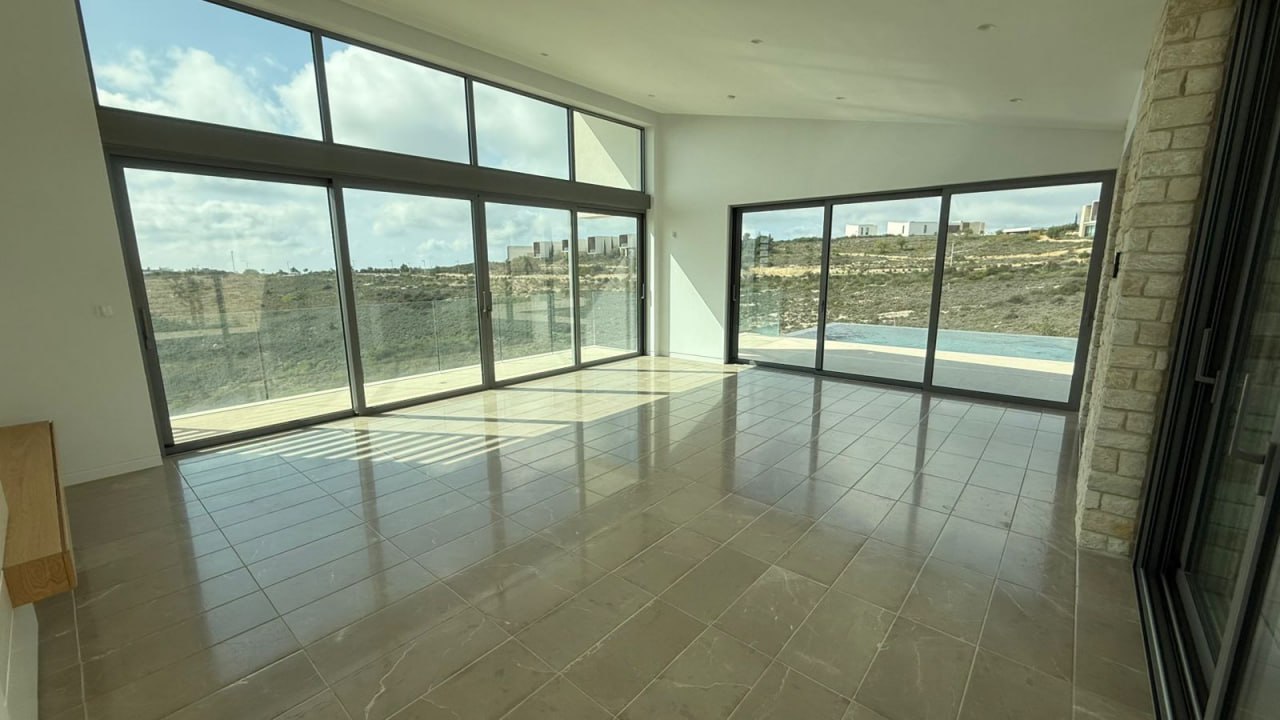 Three bedroom villa for rent in Tsada area, Paphos. The villa has an area of 250 m2 and a plot of 1100 m2. The house has three bedrooms and three bathrooms. The villa is new, will be equipped with new furniture and solar panels. The house has a magnificent view of the sea. There is a private swimming pool on site. The facility is located in a gated gated complex that offers an international golf course, a 2,000 m2 SPA center, restaurants within walking distance, concierge services, 24-hour security, and a well-developed internal infrastructure. The villa will be available for rent from May.