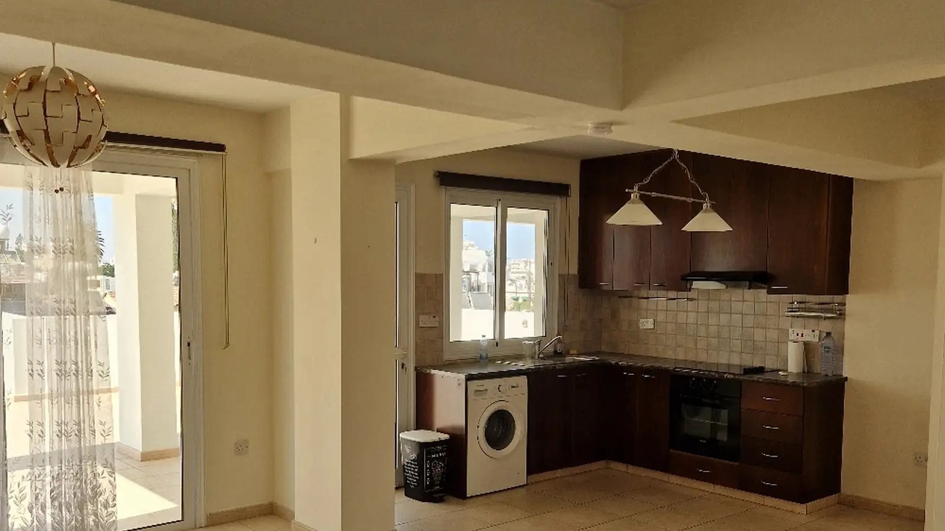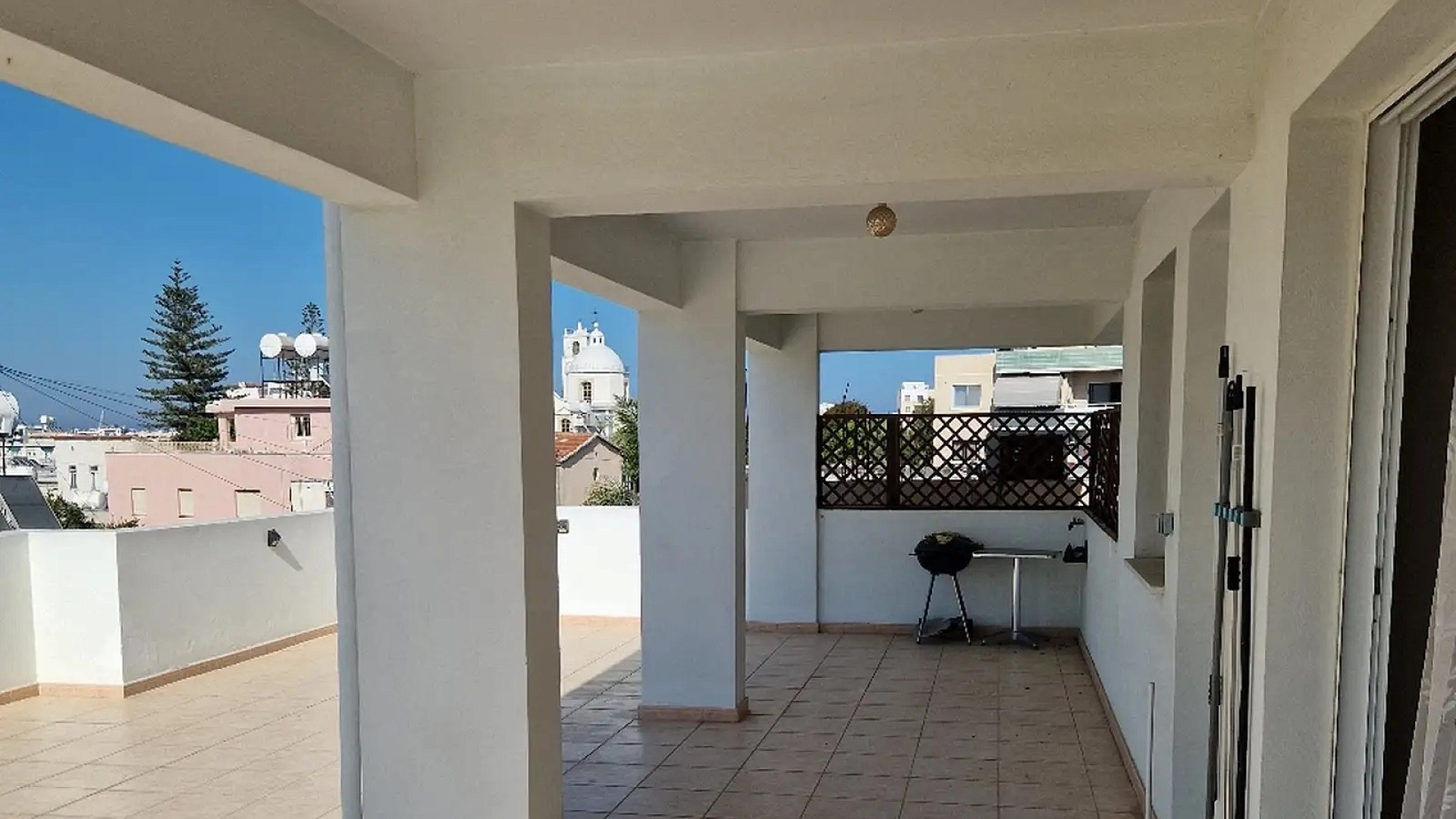 For rent a two-bedroom penthouse of 85 m2 in the area of Larnaca - Chrysopolitissa, Larnaca. The penthouse includes 2 bedrooms, 1 bathroom, a kitchen, a living room and a balcony, as well as a large covered veranda of 45 m2 and an outdoor veranda of more than 50 m2. The penthouse is equipped with household appliances and air conditioning in all rooms. The apartment is located on the 2nd floor. There is a covered parking and an elevator in the building. The year of real estate construction is 2010.