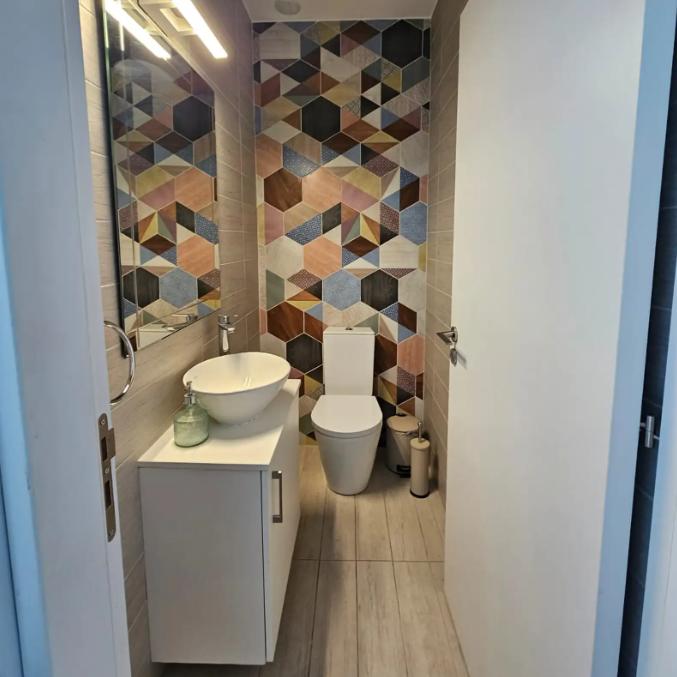 Two bedroom apartment for rent in Germasogeia area, Limassol city. The 110 m2 apartment is located on the 1st floor of a building built in 2021. The apartment is fully furnished and equipped with air conditioning in all rooms. The apartment has a spacious living room with an open-plan kitchen, two bedrooms and two bathrooms. There is a large veranda with a pleasant view, as well as an additional small balcony next to the kitchen. The apartment is equipped with a underfloor heating system and a water filtration system. The house is located in a quiet residential area with convenient access to main roads and all necessary infrastructure. The building has an elevator, alarm system, covered parking. The possibility of a second parking space can be agreed with the residents of the house.