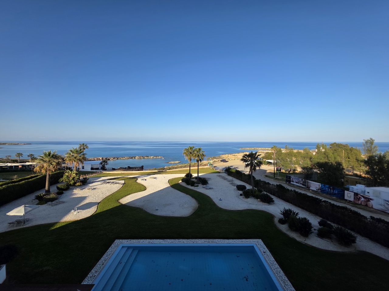 1 bedroom apartment for rent in Protaras. The gated complex with a swimming pool is located on the beach. Open-plan living room, kitchen with direct access to the balcony, bedroom and bathroom with shower. The apartment is equipped with furniture and everything necessary for a comfortable stay. There is a parking space and a one-square-meter storage room in the basement.