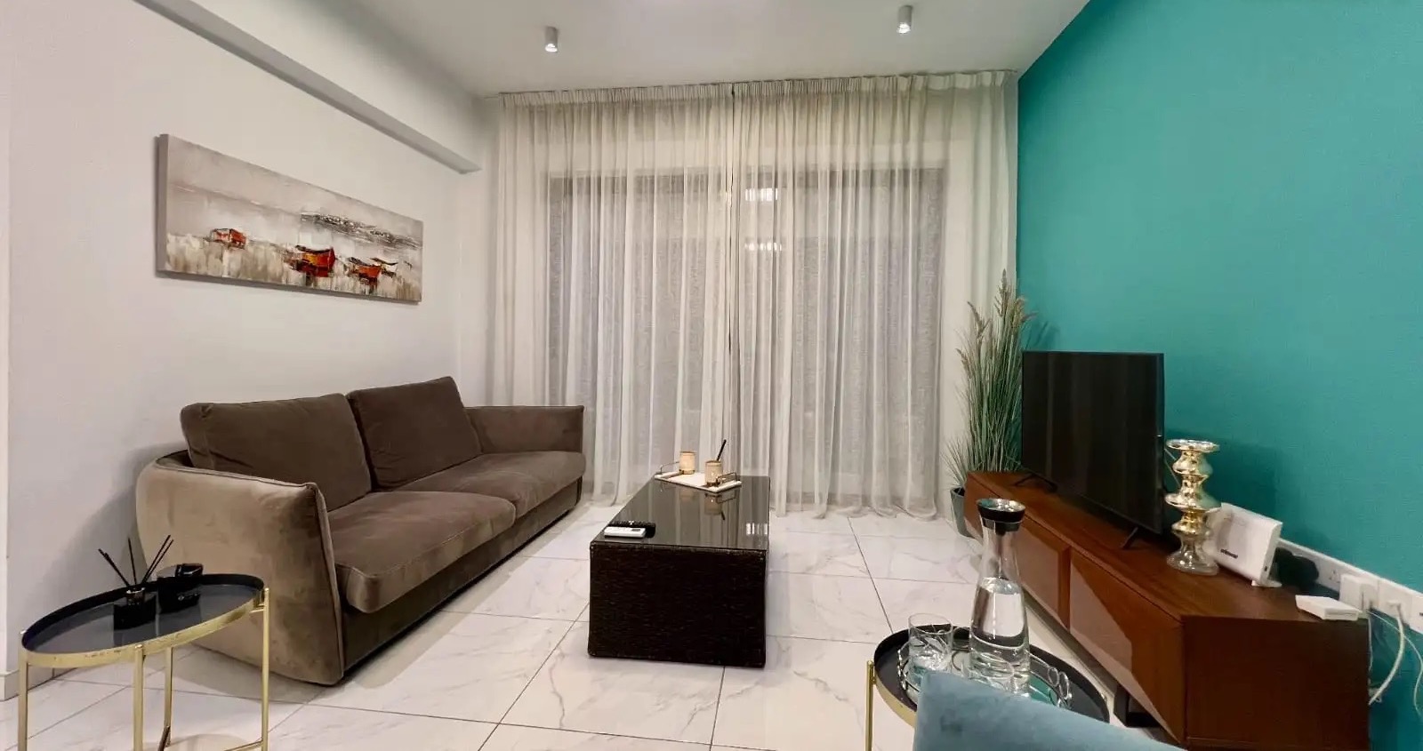A bus stop is located just steps away from the complex, making travel easy. The location is excellent, only 2 minutes from the center of Paralimni, 5 minutes from Protaras beaches, and 10 minutes from Ayia Napa.