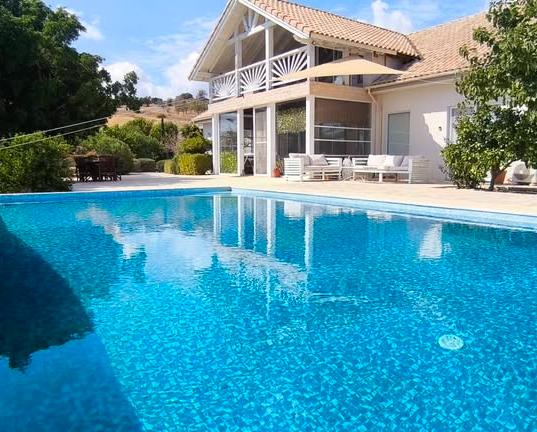 Private furnished house for rent in Nata area, Paphos city. The house is located on a plot with a private swimming pool and an area of about 330 m2. The layout includes four bedrooms, each with its own bathroom and dressing room, an additional bathroom/laundry room near the kitchen and a guest toilet. The house is equipped with a spacious fully equipped kitchen with easy access to the terrace and pool area. There is also a Jacuzzi and a place for outdoor recreation. The house is available for rent from December 1st.