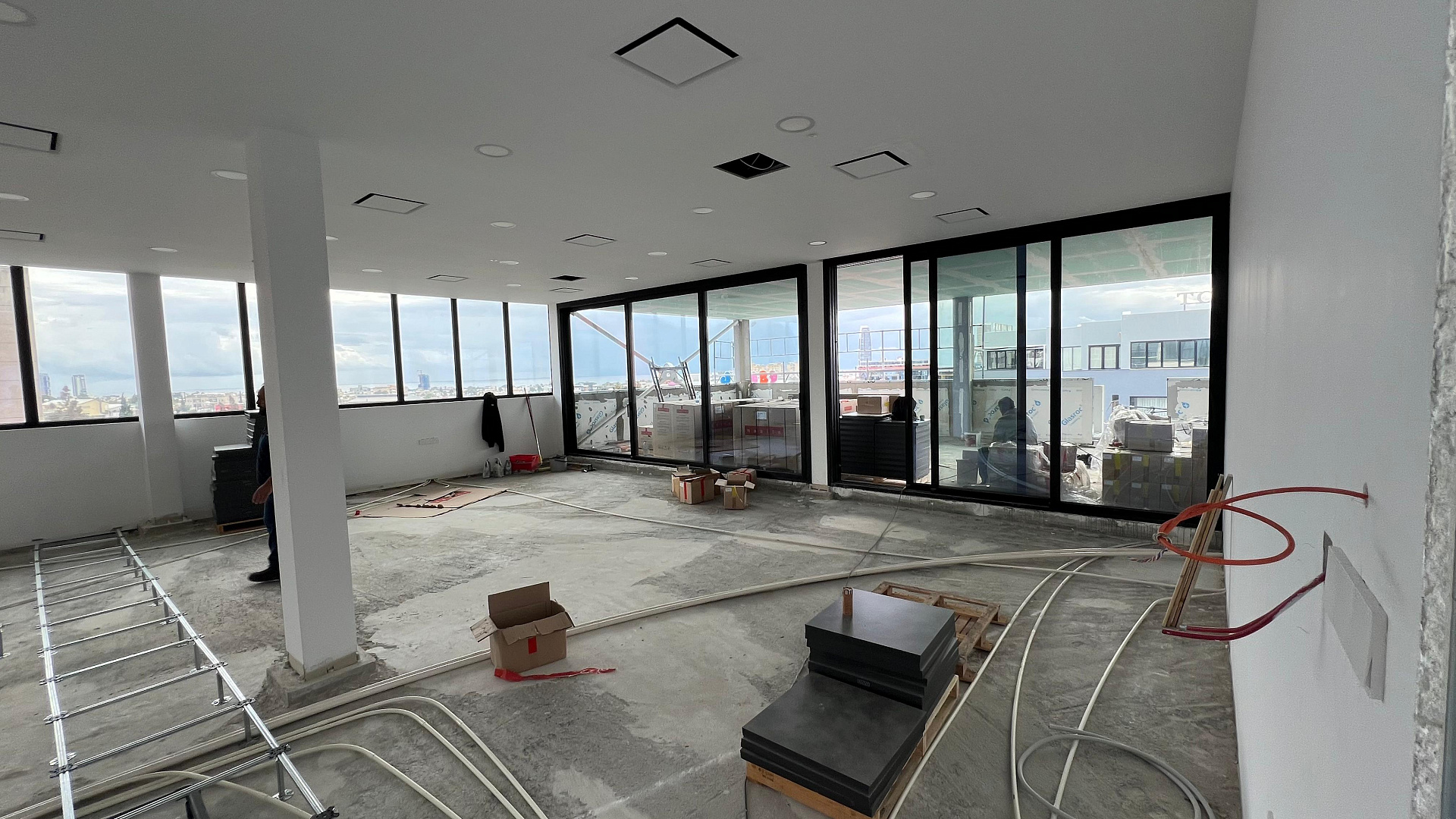 680 sq m office for rent, including 640 sq m of interior office space and a 40 sq m terrace, in the Linopetra area of Agios Athanasios. This open-plan space features 2.8 m ceilings and parking for 12 cars.