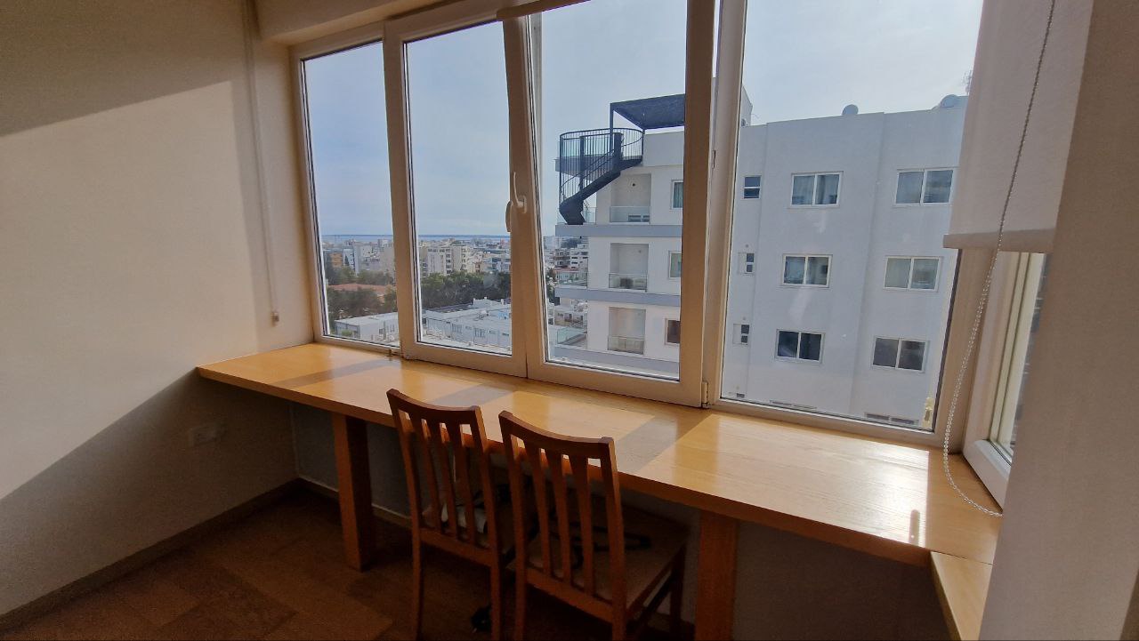2 bedroom apartment for rent on the 8th floor in the city center, next to Costa coffee on Makariou Avenue, Limassol. Within walking distance of restaurants, coffee shops, Grammar school, pharmacies, shops. It is equipped with everything necessary. New air conditioners in all rooms. Available from April 1, 2026.