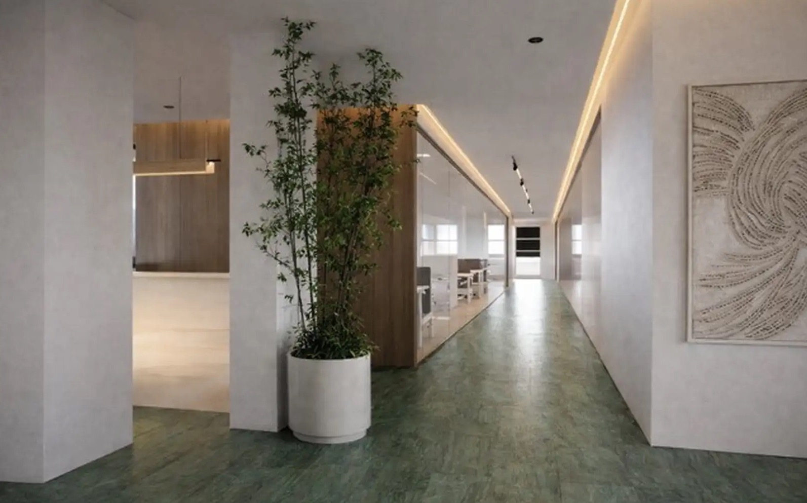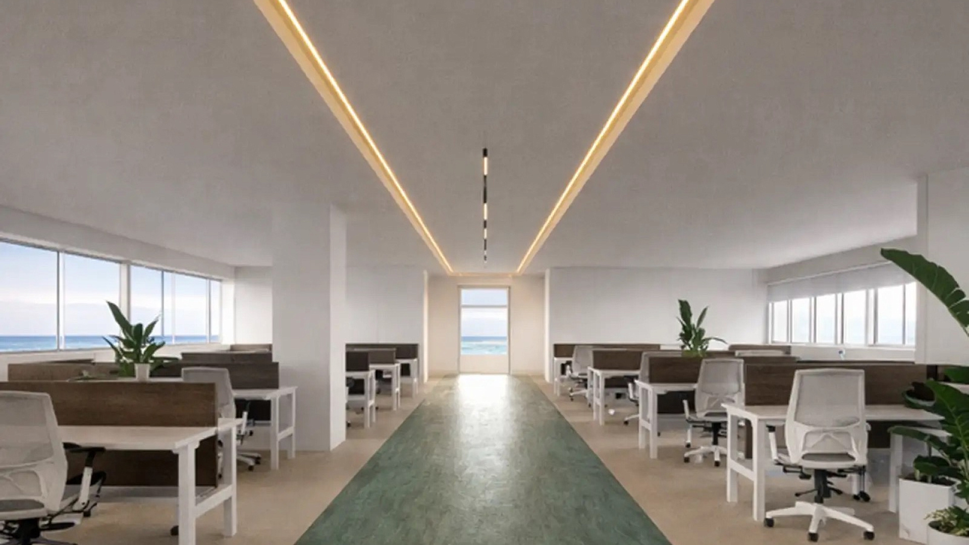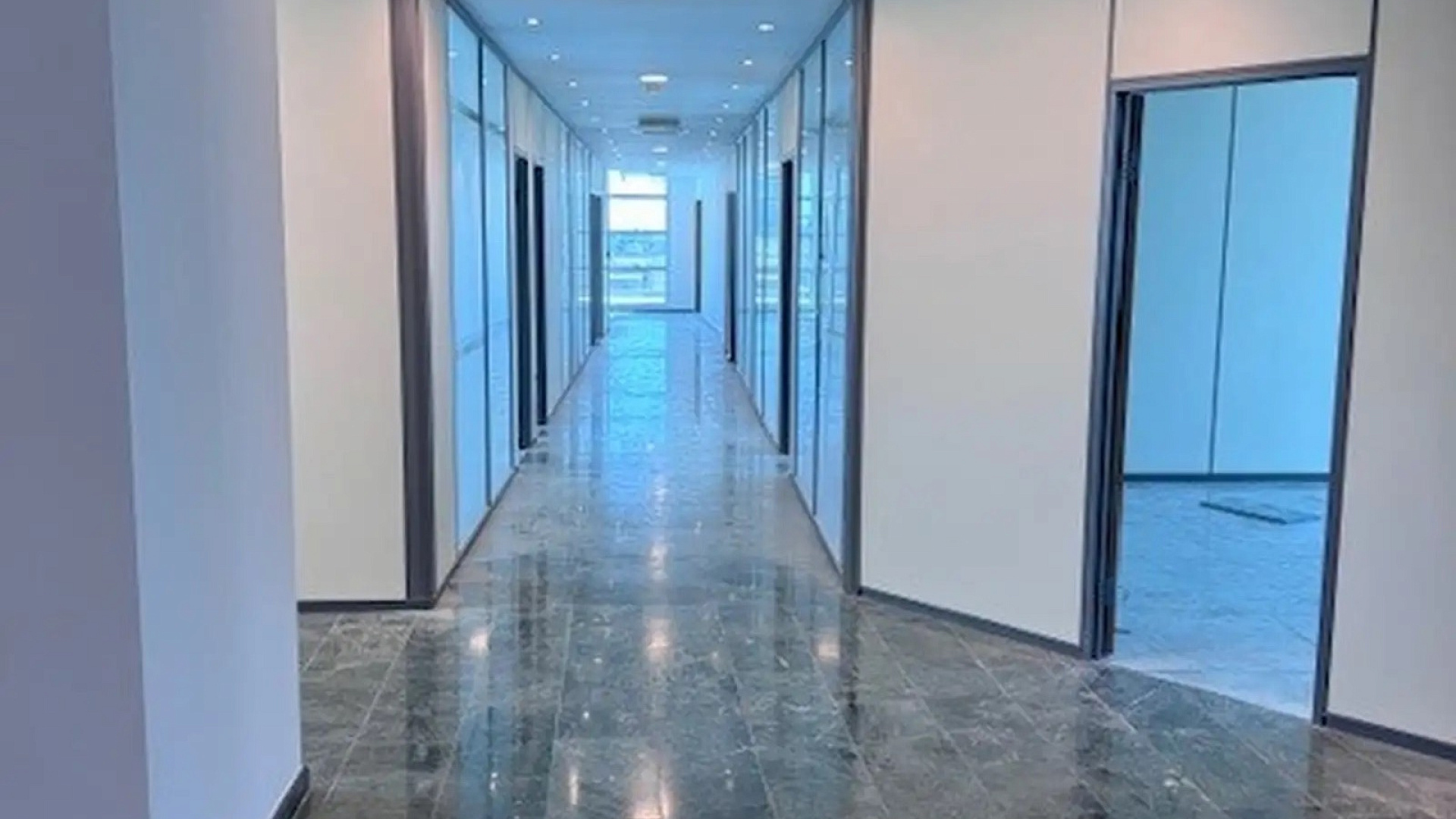 Office space of 450 m2 for rent in the area of Agios Athanasios, Limassol. The office includes two office wings with raised floors and existing partitions, a conference room, a reception area, a spacious lobby, a fully equipped kitchen, guest bathrooms, a separate bathroom for people with disabilities, as well as two private offices. At the moment there are 10 classrooms, if necessary, the layout can be changed by reducing the number of classrooms and organizing an open space. The commercial space is unfurnished and can be adapted to the individual needs of the tenant, while equipped with an elevator, alarm system, parking spaces and a balcony. The property is located in one of the most prestigious areas of the city, above the Porsche Center, with convenient access to the motorway and quick access to the Limassol city center. The property has a premium level, a spacious panoramic balcony of 350 m2 with the possibility of organizing a lounge area, gym, terrace or relaxation area, as well as flexible rental conditions depending on the chosen concept and finishing level.