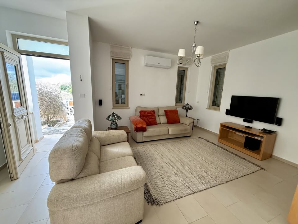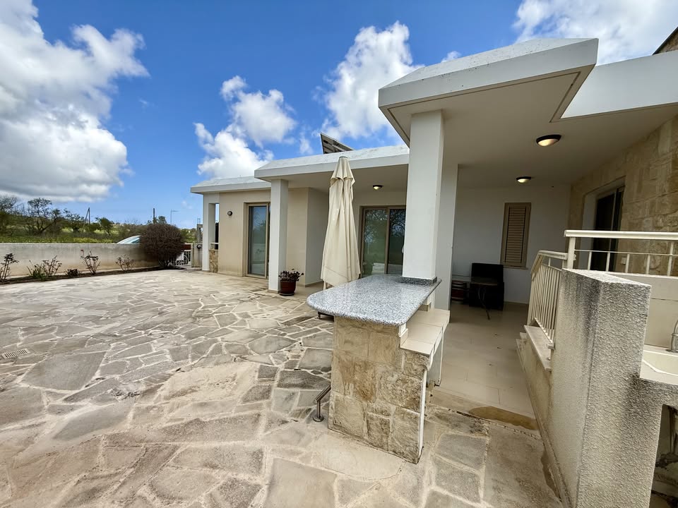 Three-bedroom house for rent with an area of 125m2, on a plot of 534m2 in the area of Pano Arodes, Paphos. The house includes two bedrooms and one sound-insulated room suitable for an office, a music studio or a third bedroom, two bathrooms, a spacious living room, a fully equipped kitchen and a laundry room. The house is fully furnished and equipped with all necessary household appliances. All rooms are equipped with air conditioning and underfloor heating, a photovoltaic system is provided to reduce energy costs, as well as an alarm system and video surveillance cameras. There is a spacious roof terrace with panoramic sea views, a barbecue area and an outdoor shower. There is a covered parking area with electric gates. The house is located in a quiet area, just a minute from the Peyia–Polis road.