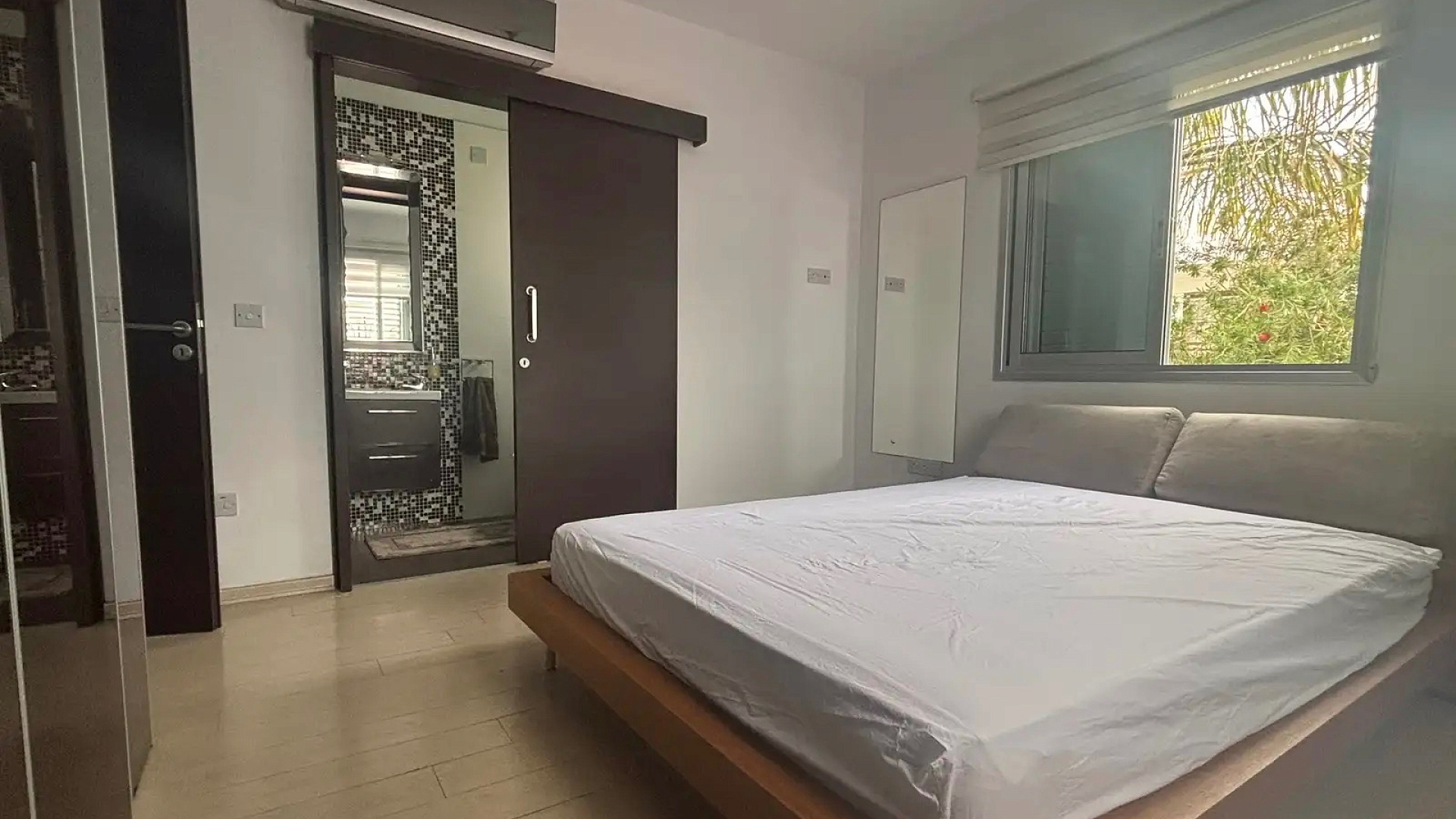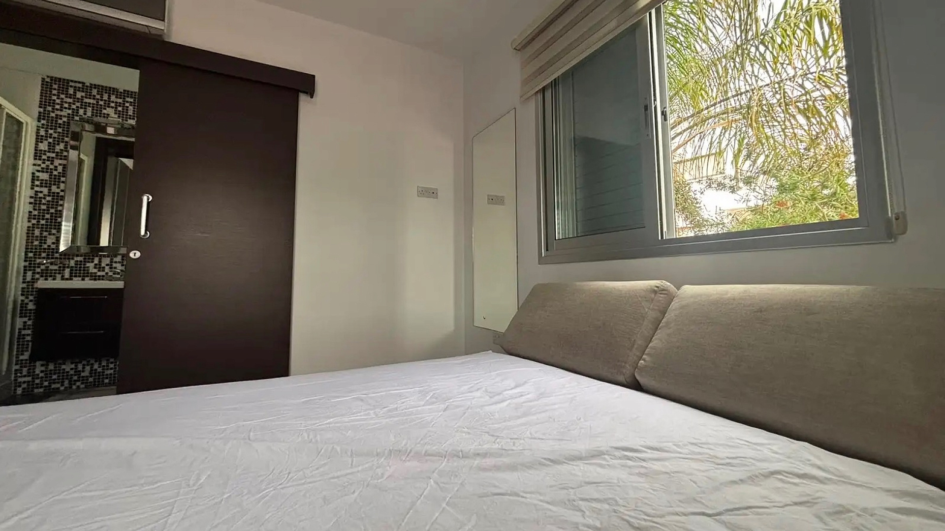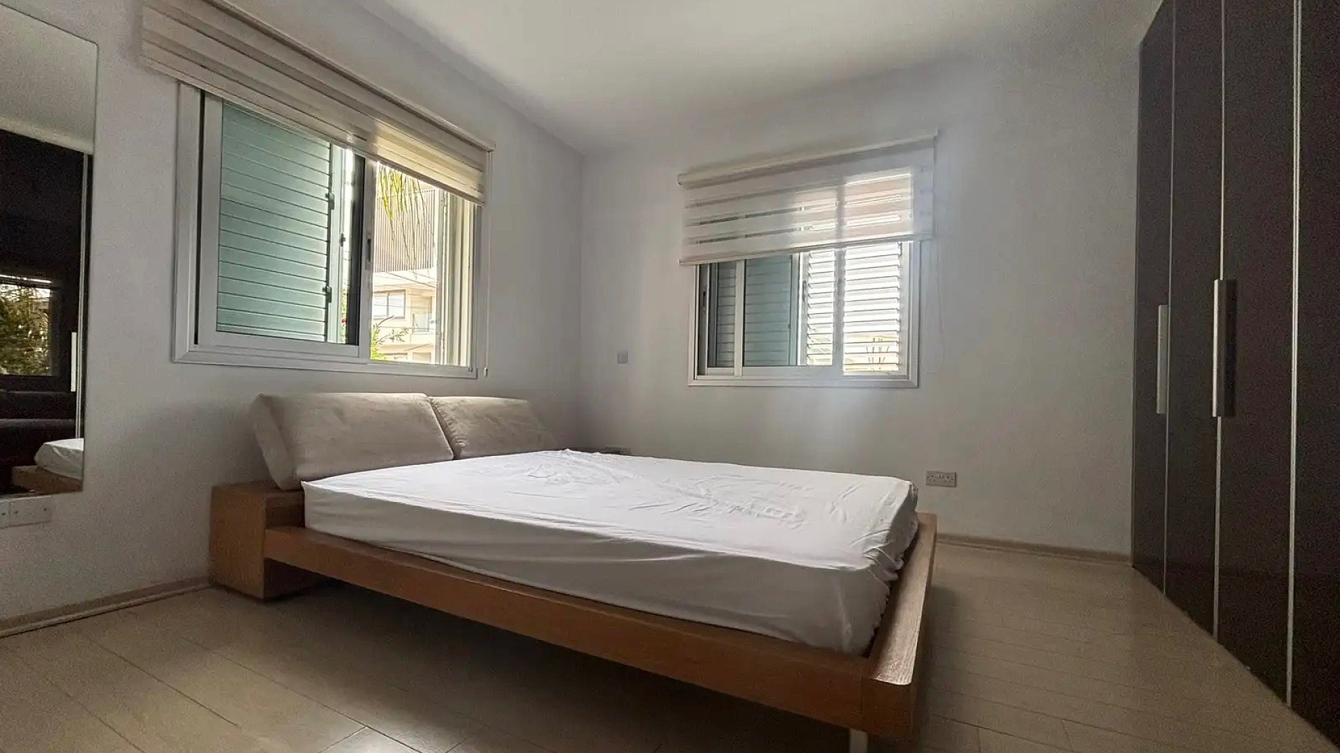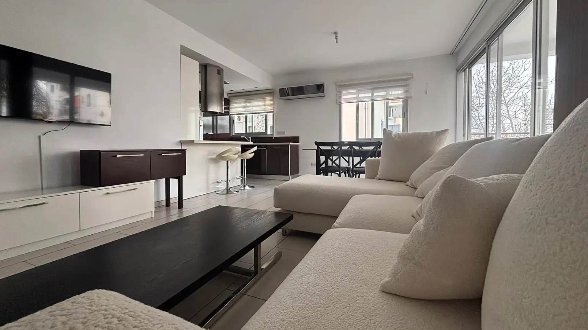 For rent a two-bedroom apartment of 80 m2 in the area of Strovolos, Nicosia. The apartment includes 2 bedrooms, 2 bathrooms, a kitchen, a living room, a covered veranda of 20 m2, a balcony and a storage room. The apartment is located on the 1st floor. The property is fully furnished and equipped with household appliances, including a dishwasher, an oven, a built-in microwave, an induction hob, an extractor hood, a refrigerator and a washing machine, as well as equipped with an air conditioning system in all rooms and an elevator in the building. The accommodation is located in a quiet residential area on Athinon Street, parallel to Stavrou, providing convenient access to urban infrastructure and basic amenities. The residence was built in 2009, has a high energy efficiency class A, is located in a small residential building with only 6 apartments, includes a covered parking space and is ready for immediate occupancy. Pets are not allowed.