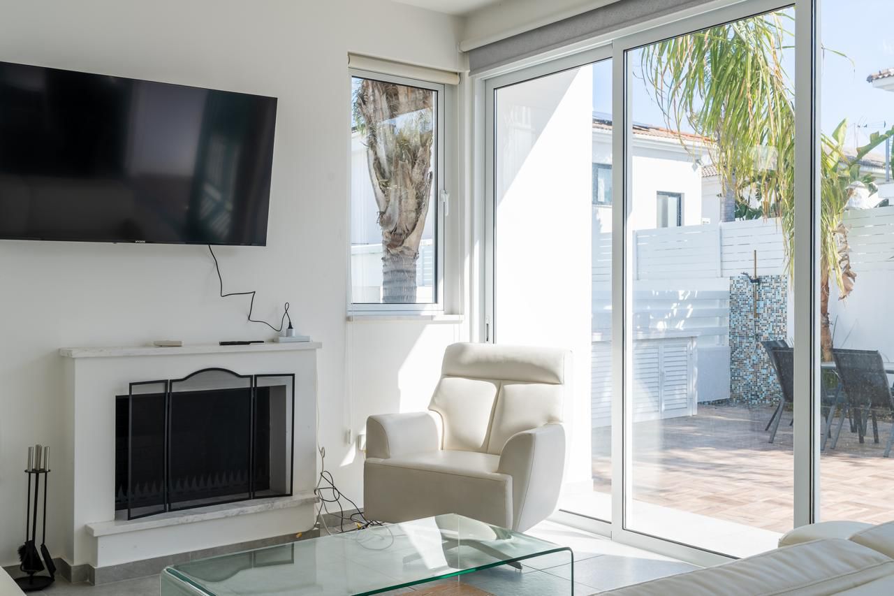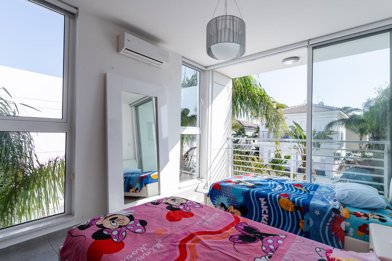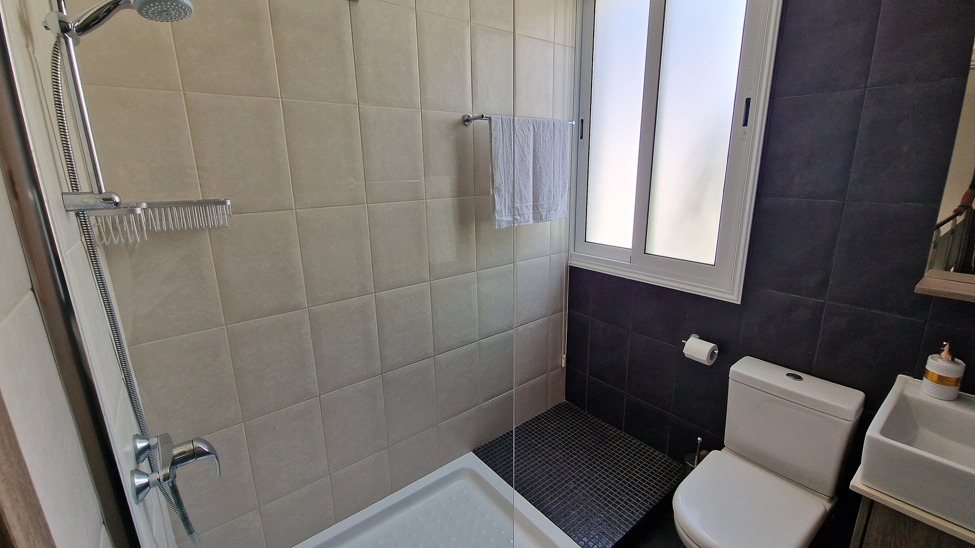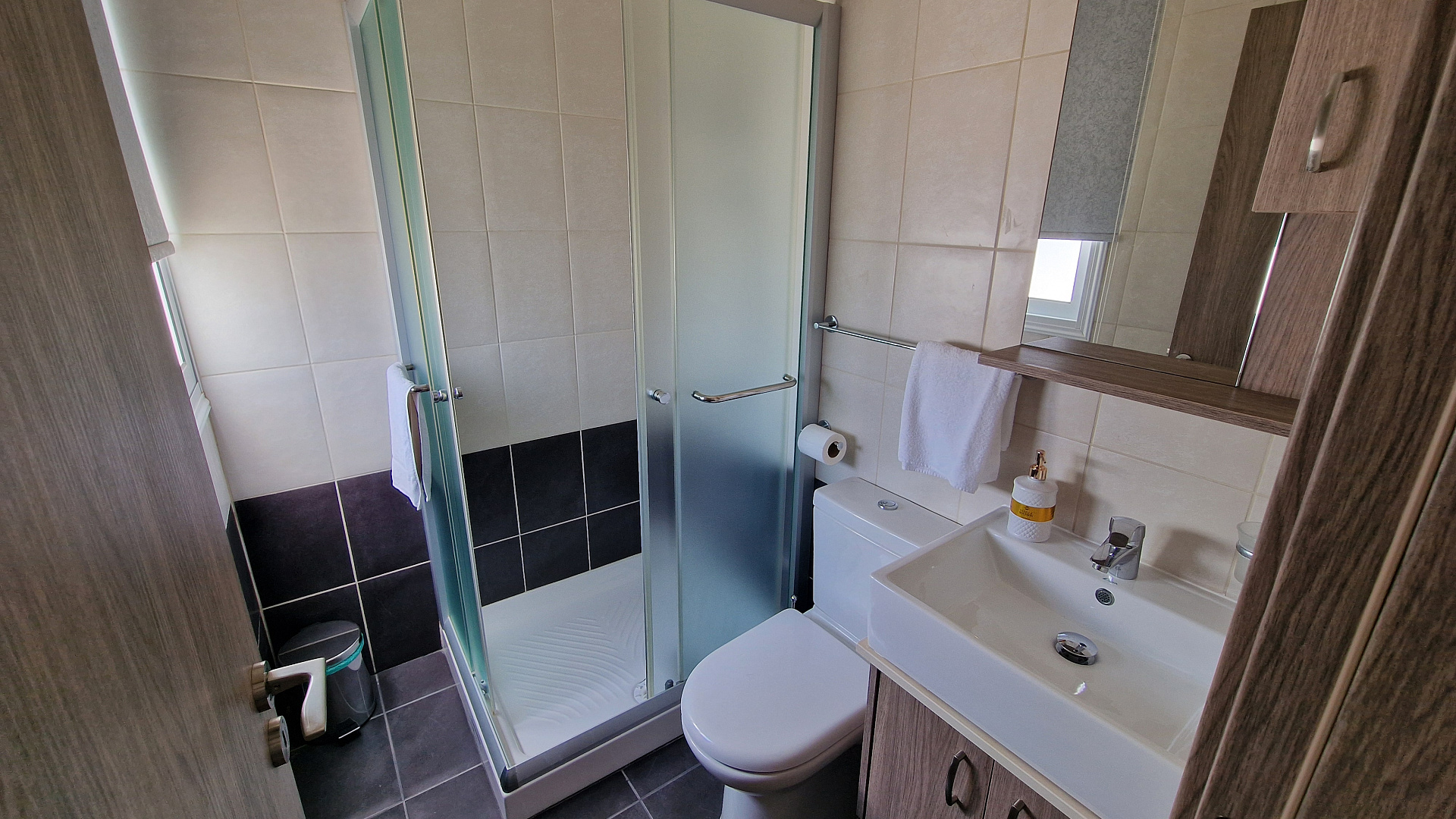 Three bedroom villa for rent in Kaparis area, Famagusta. The villa includes three bedrooms, two bathrooms and a guest toilet, a kitchen and a spacious living room. The house is fully furnished and equipped with household appliances and air conditioners. There is a private swimming pool and parking on site. The villa is located in a private, quiet complex close to supermarkets, cafes and restaurants. It's a five-minute walk to the beach.