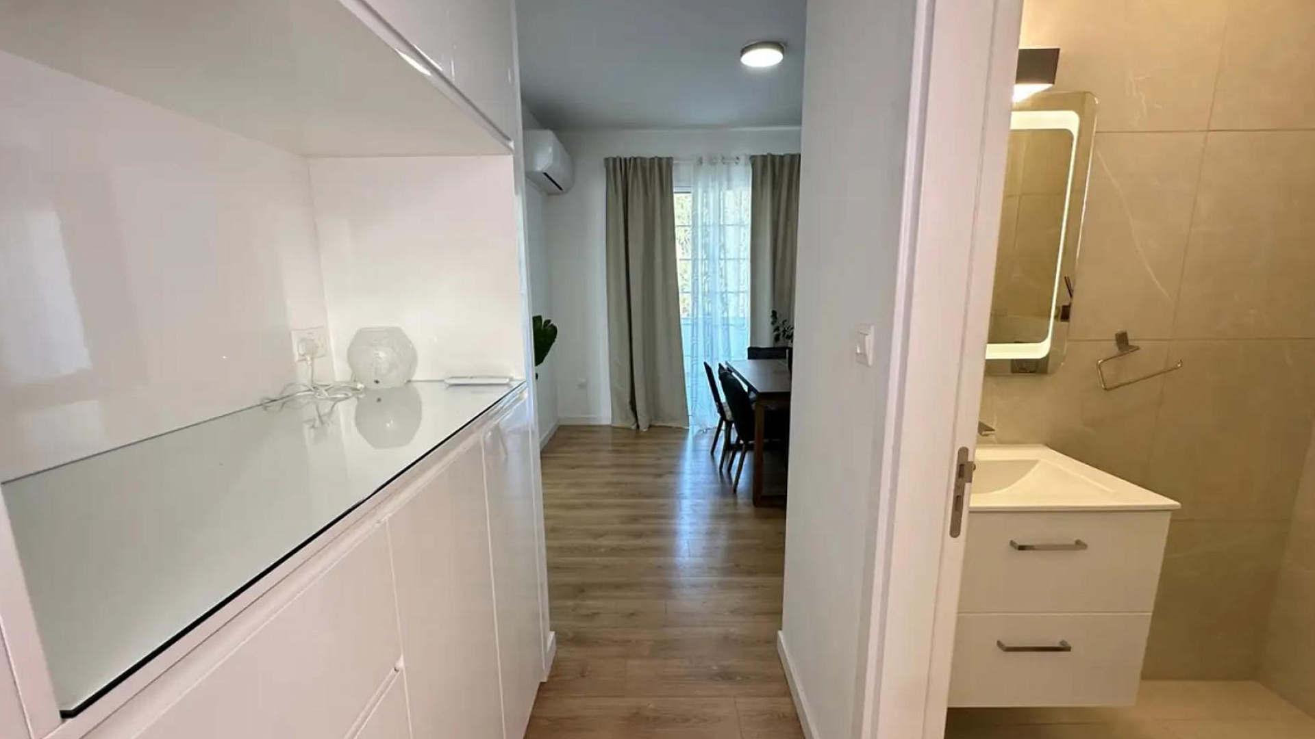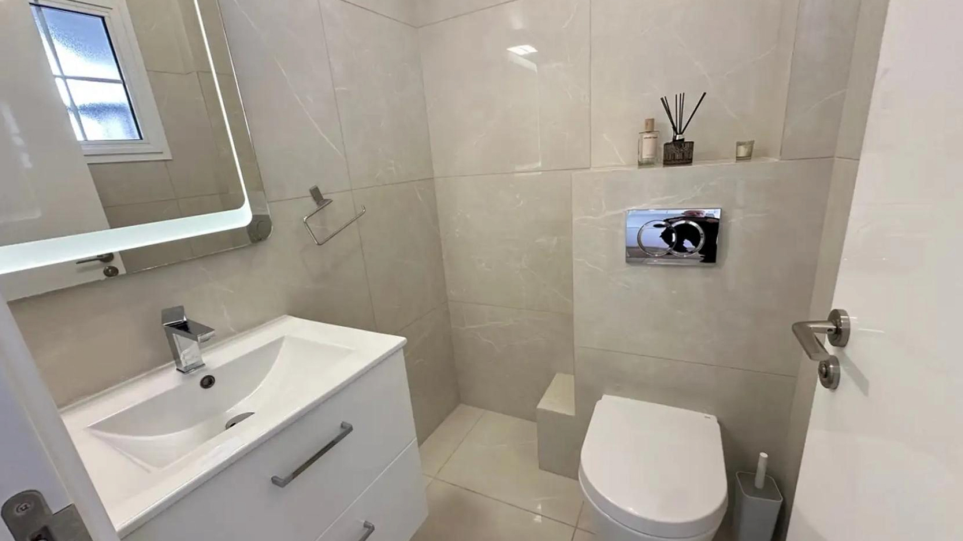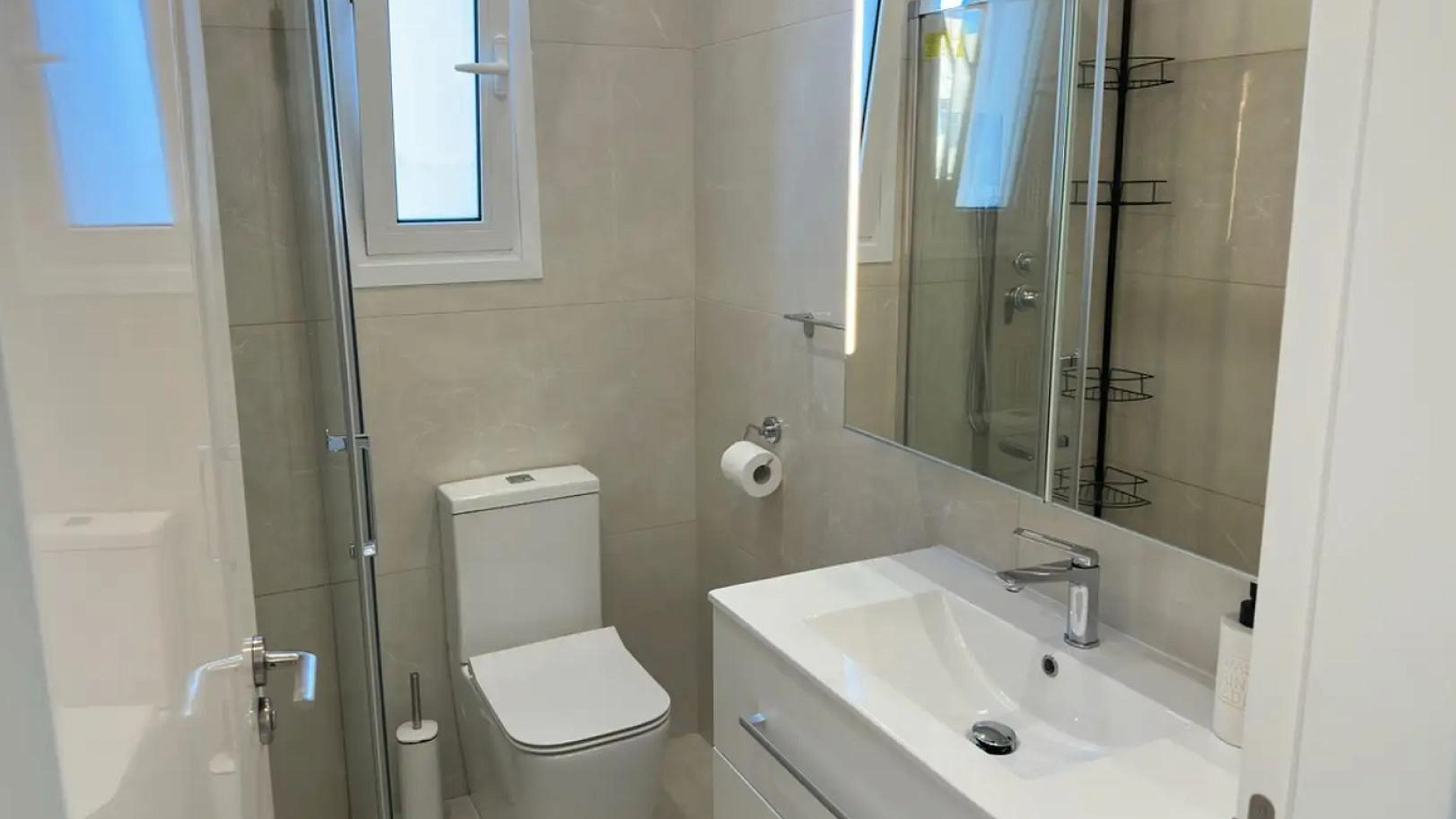 2 + 1 apartment for rent in Potamos‑Germasogeia area, Limassol, with an area of 105 m2. The apartment is fully furnished, located on the third floor, with a large veranda, two bedrooms and a study that can be converted into a third bedroom or used as an office, all rooms are equipped with air conditioning. The house has a covered parking, a storage room and an elevator.