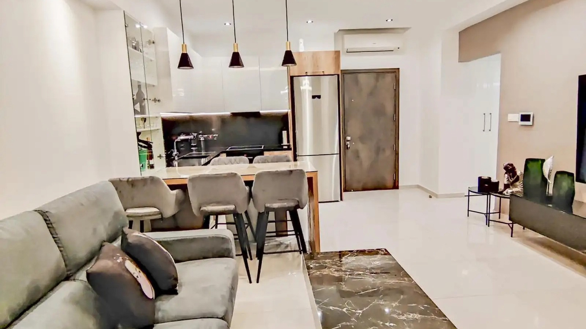 One-bedroom apartment of 55 m2 for rent in the area of Agios Athanasios, Limassol. The apartment includes 1 spacious bedroom, 1 modern bathroom, an open-plan kitchen combined with a living room, as well as a private veranda of 10 m2. The apartment is fully furnished, equipped with air conditioning in all rooms, an elevator, and has 2 private parking spaces. The apartment is located on the 1st floor. The property is located in one of the most prestigious residential areas of the city with convenient access to the highway, just a few minutes from the center of Limassol and the waterfront. The property was built in 2023 and features modern design, high-quality finishes and high energy efficiency class A, offering comfortable accommodation in a quiet and strategically convenient location.