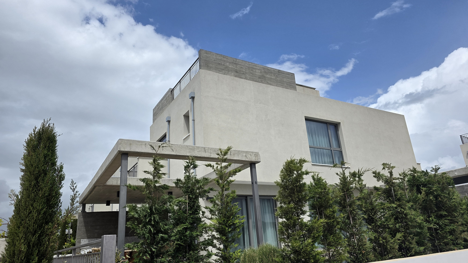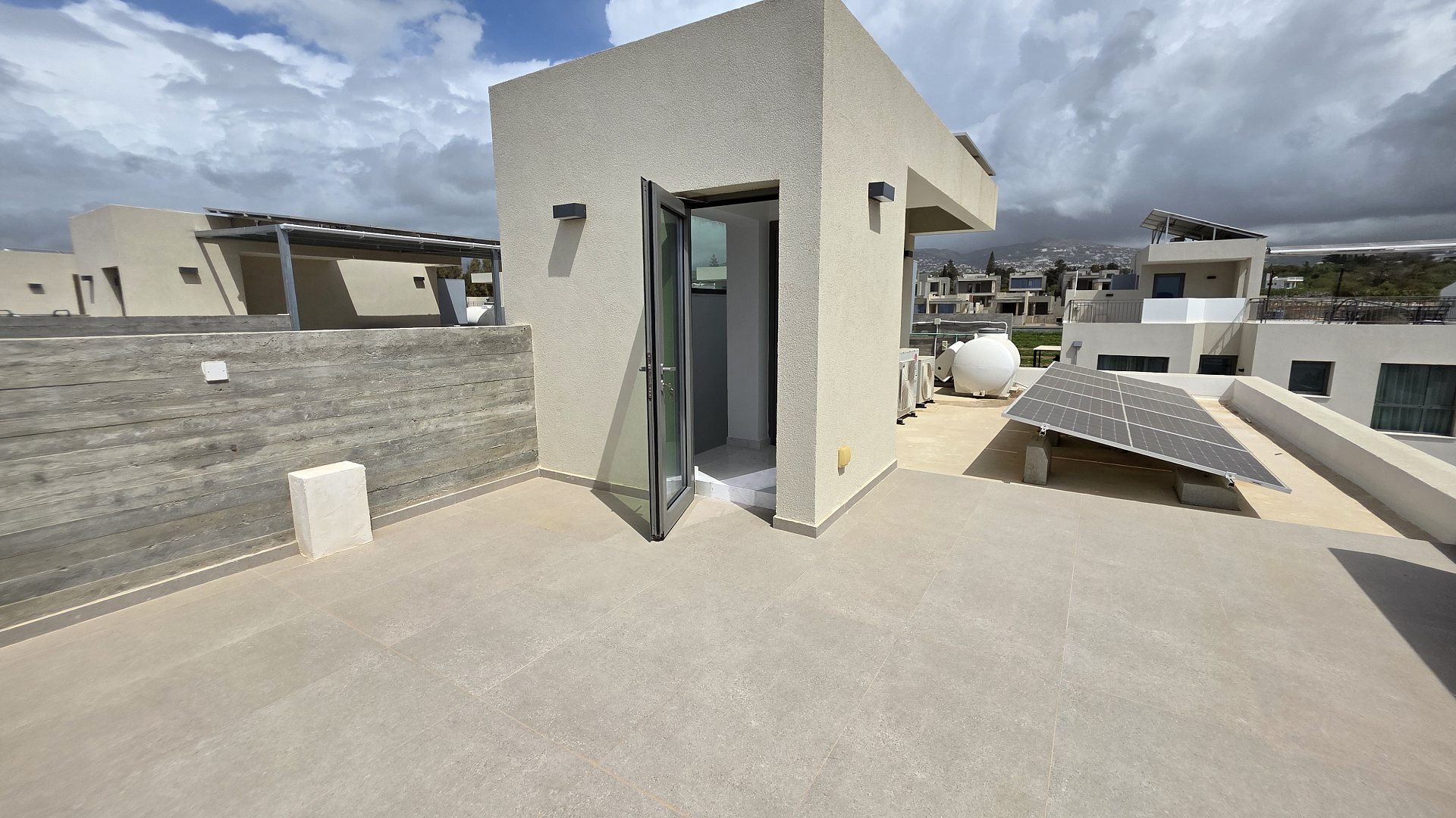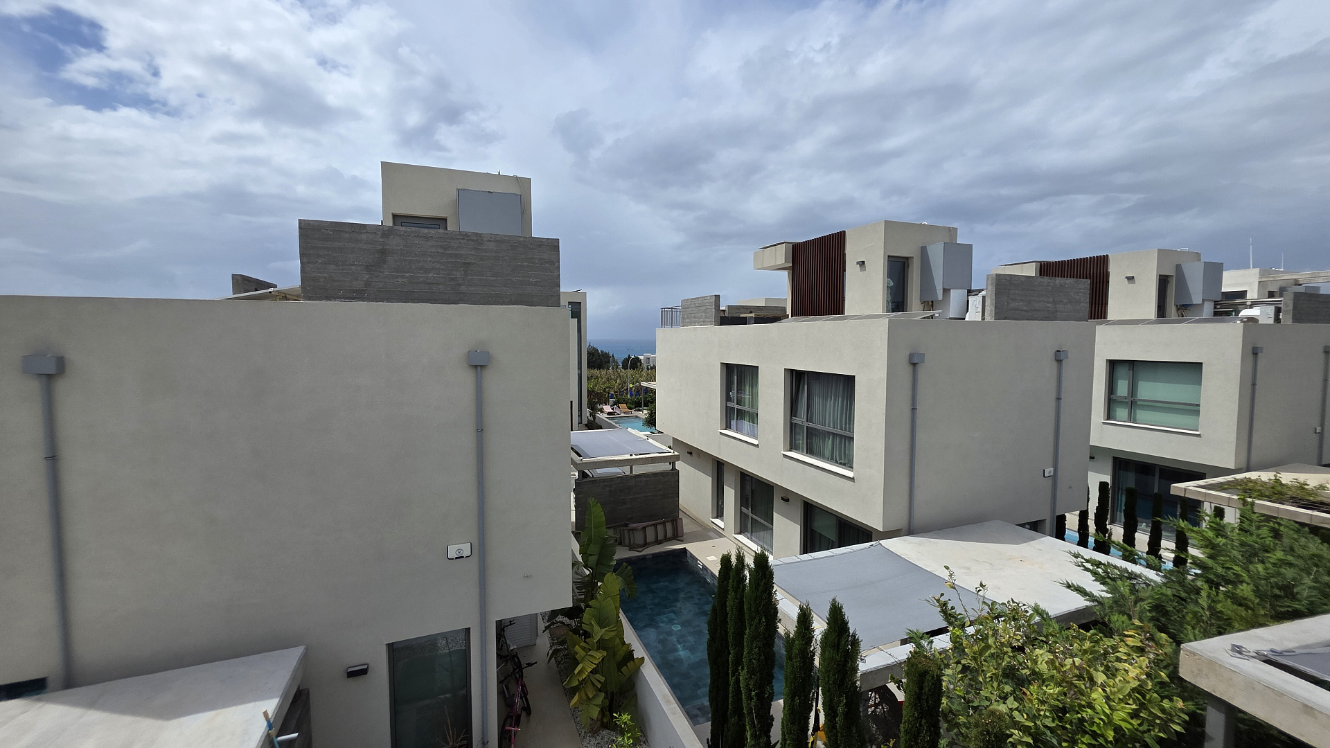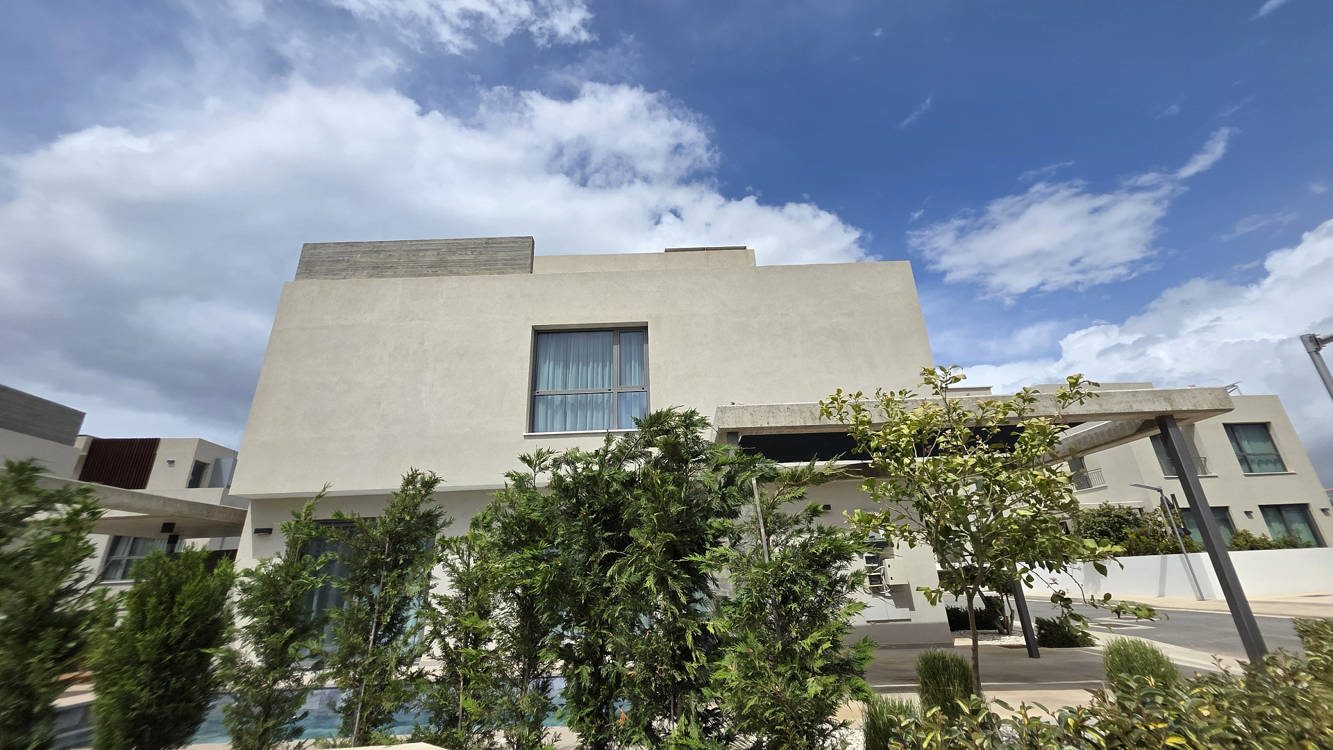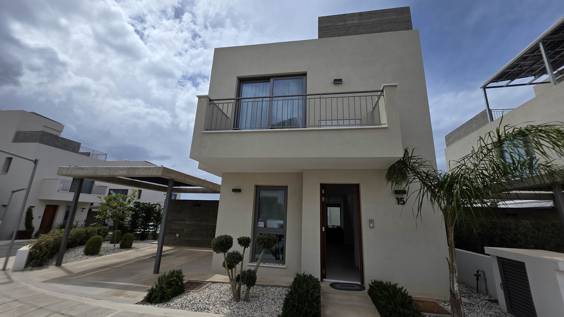 Two-bedroom villa of 200 m2 for rent in the area of Kissonerga, Paphos. The villa includes 3 bedrooms, 3 bathrooms, a kitchen, a living room, a terrace, balconies, a rooftop relaxation area, a private pool and a covered parking. The residence is fully furnished and equipped with VRV air conditioning, underfloor heating, solar panels and all necessary household appliances. The property is located in a great area with sea views, just 350 m from the coast. There is an outdoor shower by the pool, a neatly landscaped plot and a shared playground in the complex.