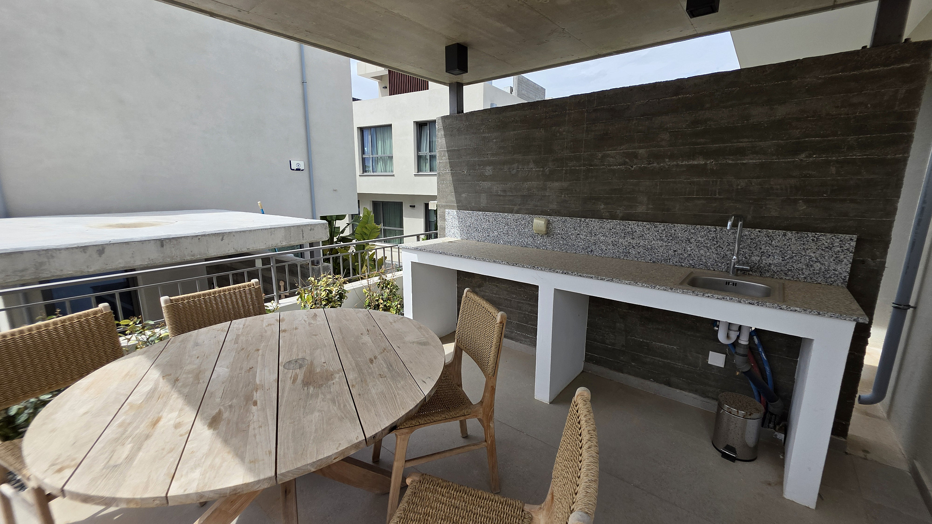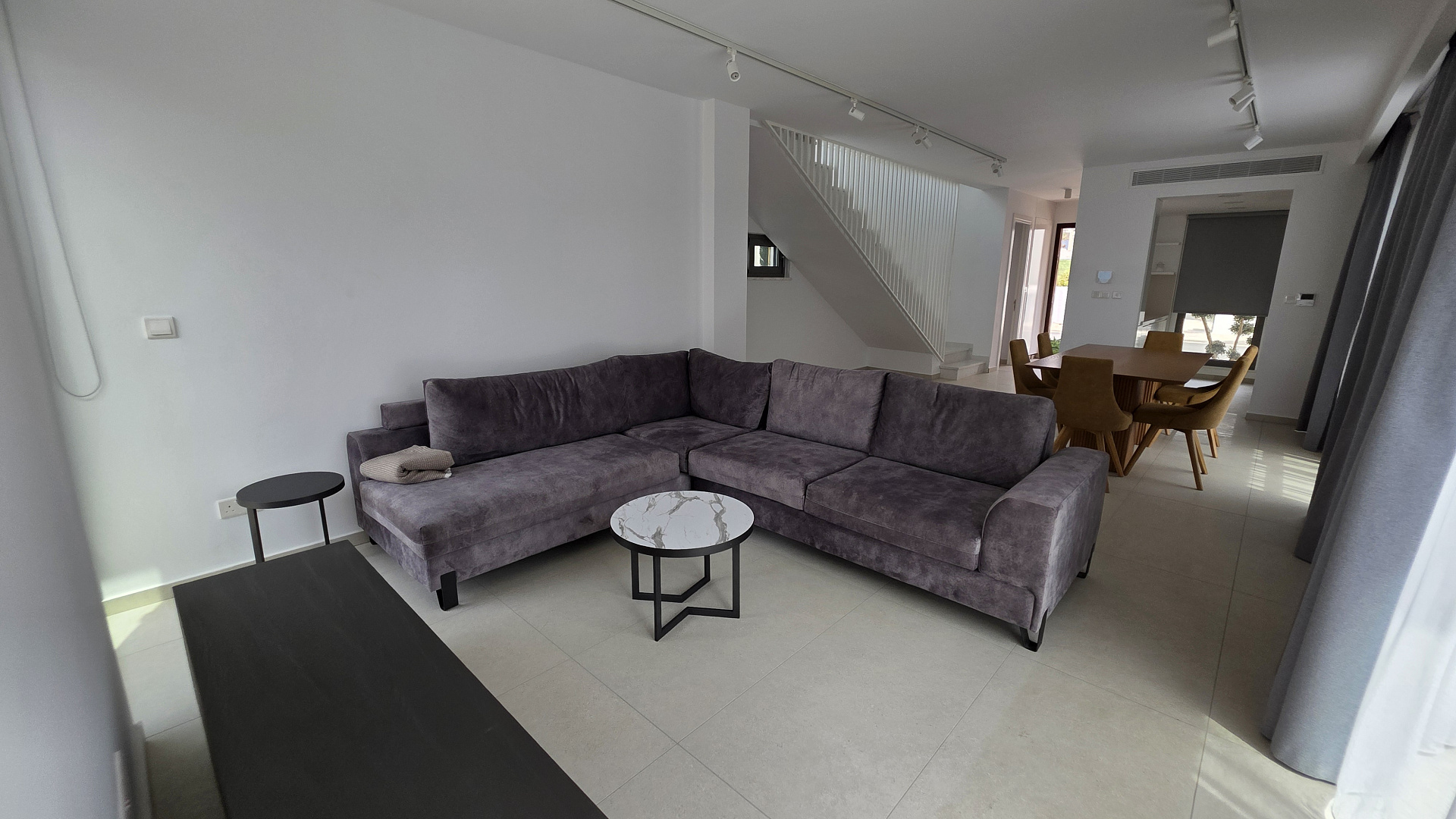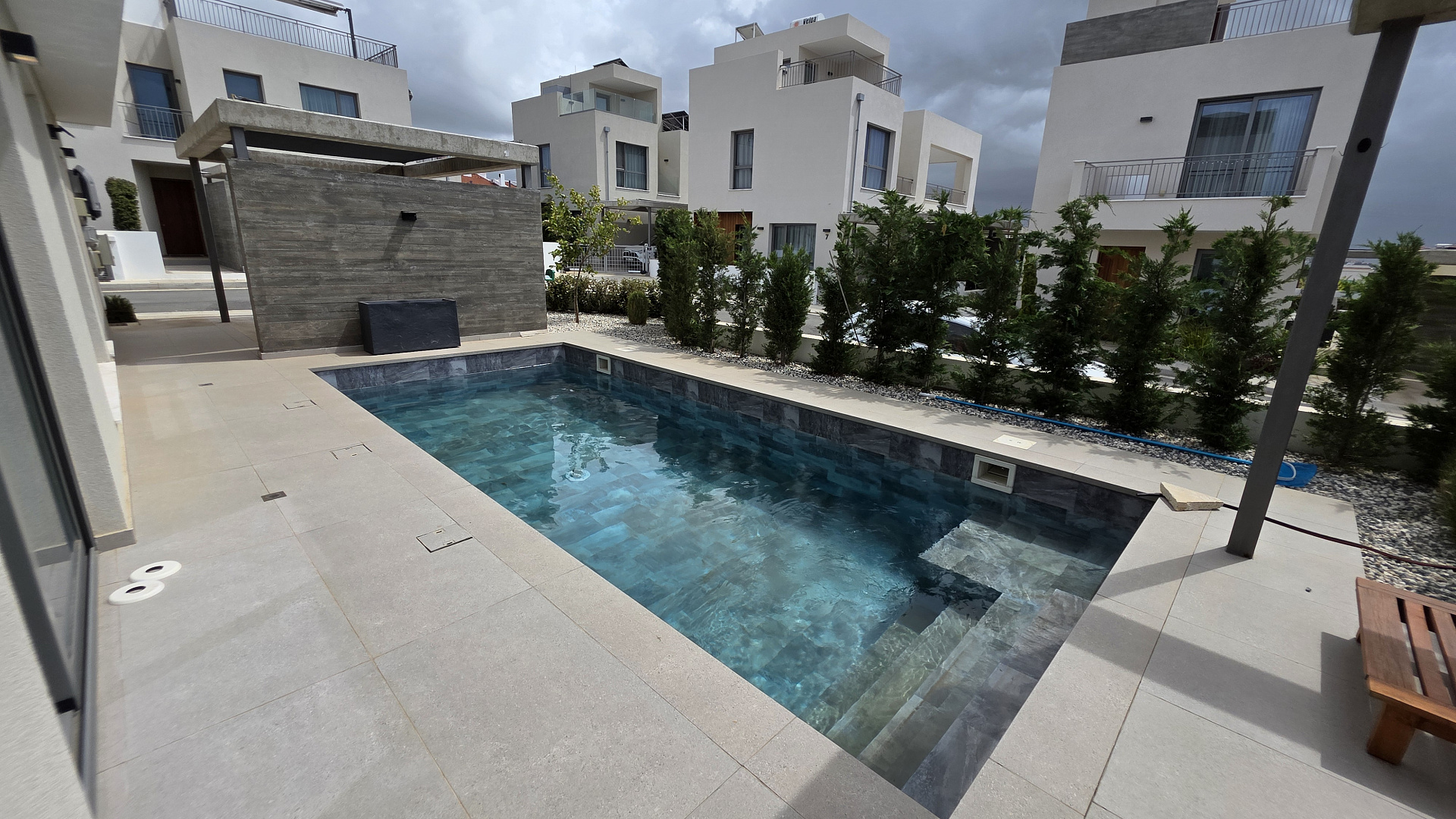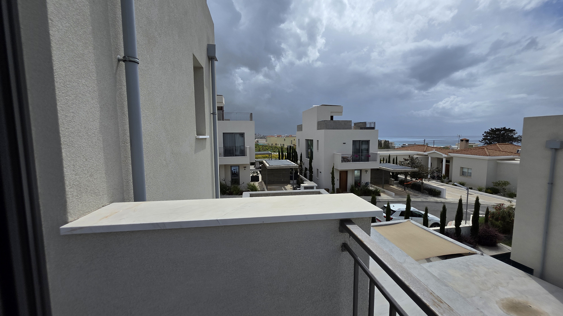 Two-bedroom villa of 200 m2 for rent in the area of Kissonerga, Paphos. The villa includes 3 bedrooms, 3 bathrooms, a kitchen, a living room, a terrace, balconies, a rooftop relaxation area, a private pool and a covered parking. The residence is fully furnished and equipped with VRV air conditioning, underfloor heating, solar panels and all necessary household appliances. The property is located in a great area with sea views, just 350 m from the coast. There is an outdoor shower by the pool, a neatly landscaped plot and a shared playground in the complex.