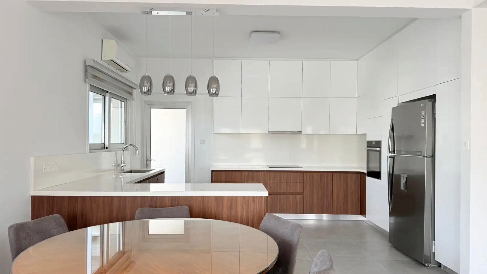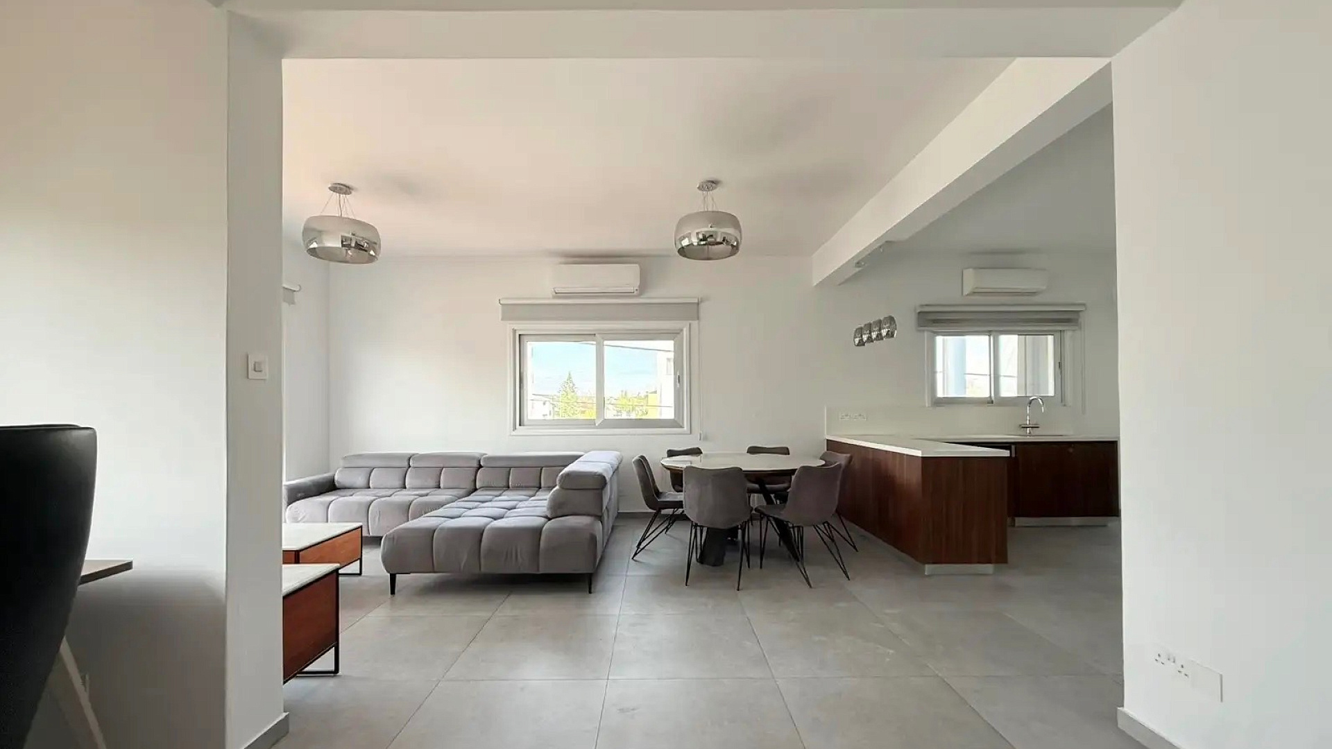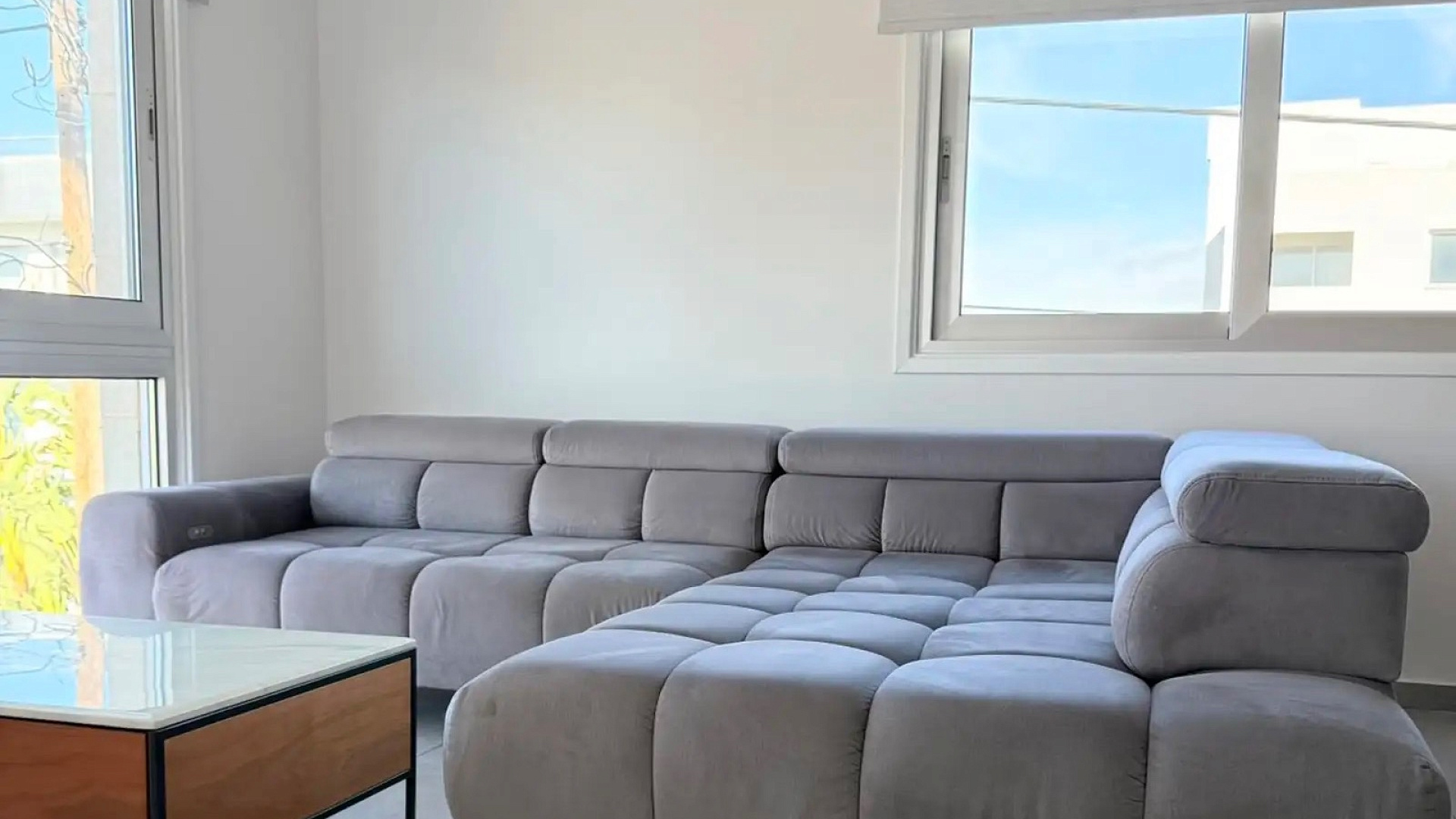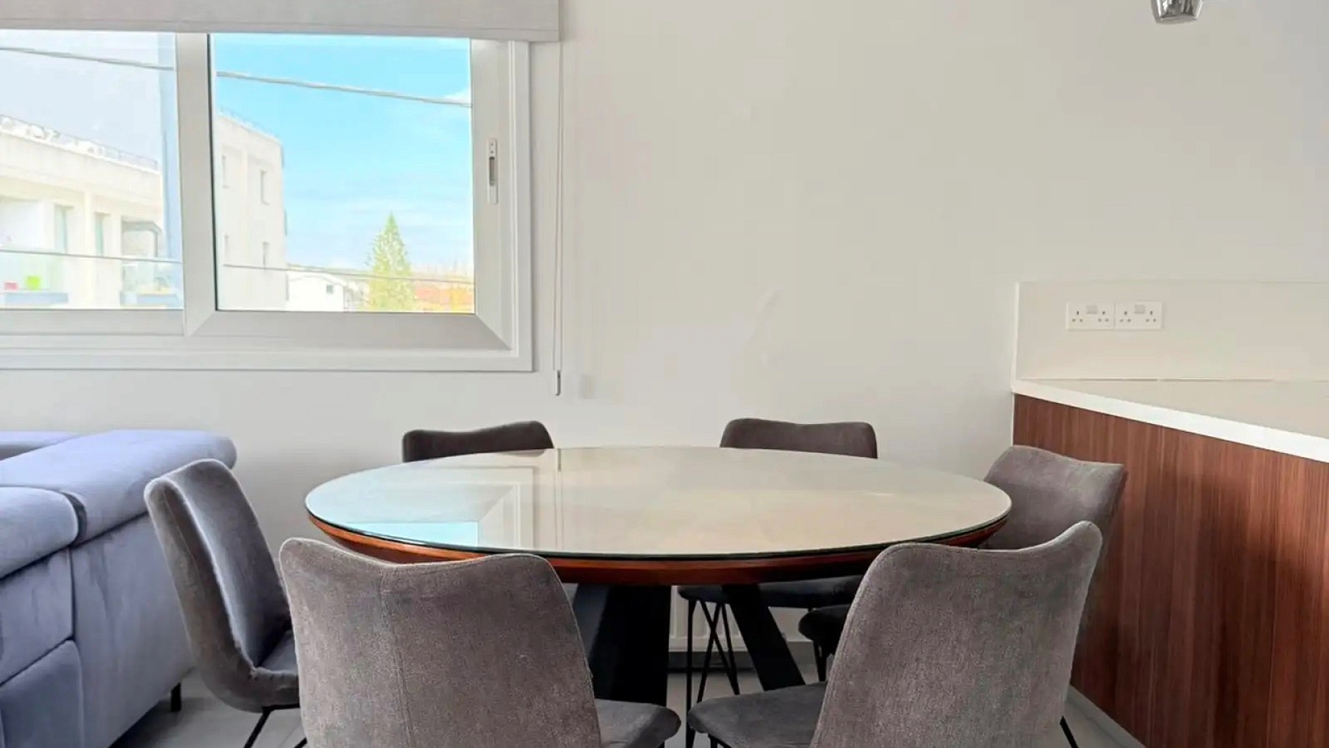 Three-bedroom apartment of 135 m2 for rent in Lakatameia, Nicosia. The apartment includes 3 bedrooms, 2 bathrooms, a separate guest bathroom, a kitchen, a living room and a balcony. The apartment is fully furnished and equipped with household appliances, including an oven, a cooktop, a dishwasher, a refrigerator, a washing machine, blinds, a gas central heating system with radiators, as well as air conditioners in all rooms. The internal area is 110 m2, an additional covered veranda of 25 m2 is provided, the facility is located on the 1st floor, has a modern design, high-quality finishes, a high level of privacy without neighbors from above and low noise levels. The apartment is located in a quiet residential area with convenient access to the Mall of Nicosia and the city center, nearby there are supermarkets, pharmacies, cafes, restaurants and all necessary infrastructure.
