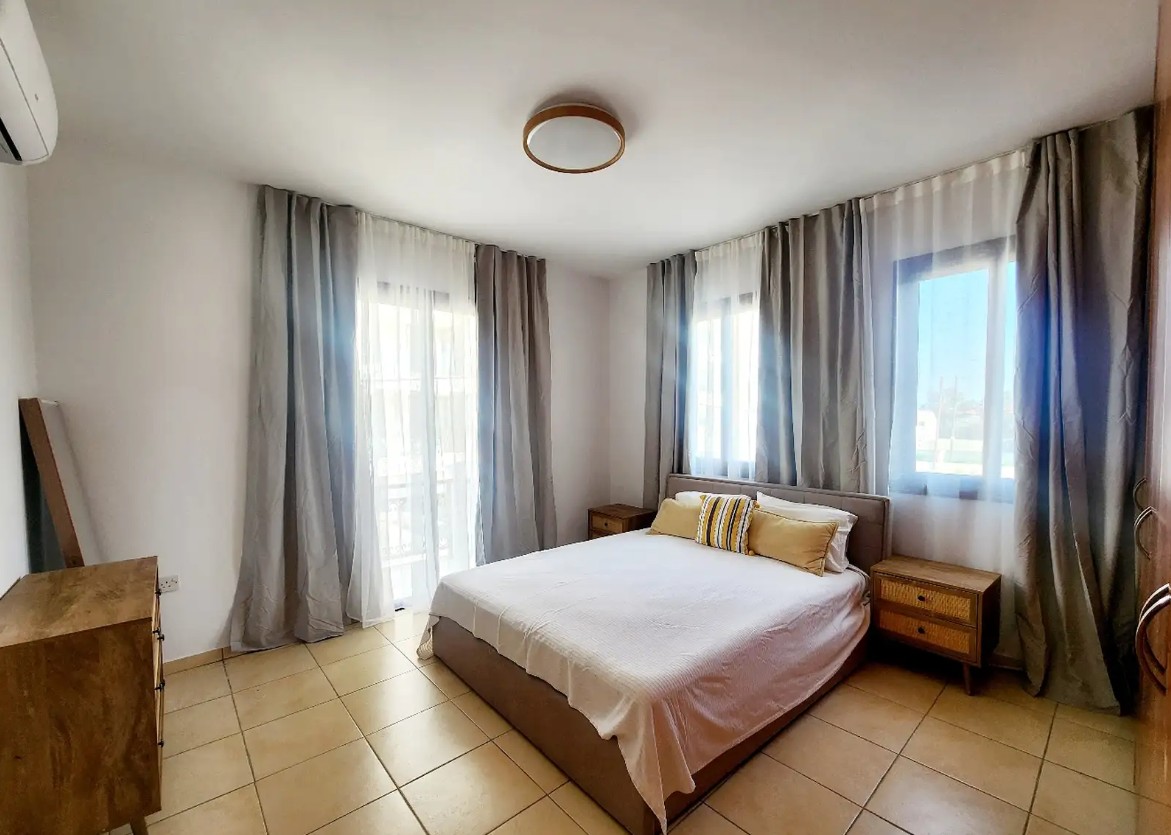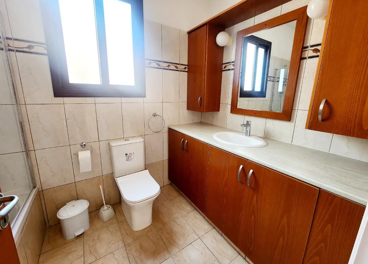 Four-bedroom house for rent in Sotiros district, Larnaca, with a total area of 178 m2 on a plot of 278 m2. The house is fully furnished, equipped with new air conditioners in all rooms, includes four bedrooms, a spacious living room, a kitchen with modern appliances, two bathrooms and a storage room. There is a new kitchen equipped with a dishwasher, washing machine and dryer. The house has a covered veranda, an attic, a water filtration system, a well-maintained garden with fruit trees and a covered parking. The house is located on a quiet street near Radisson Blu and Sklavenitis. The area is a developed part of the city with convenient infrastructure. Pets are not allowed.